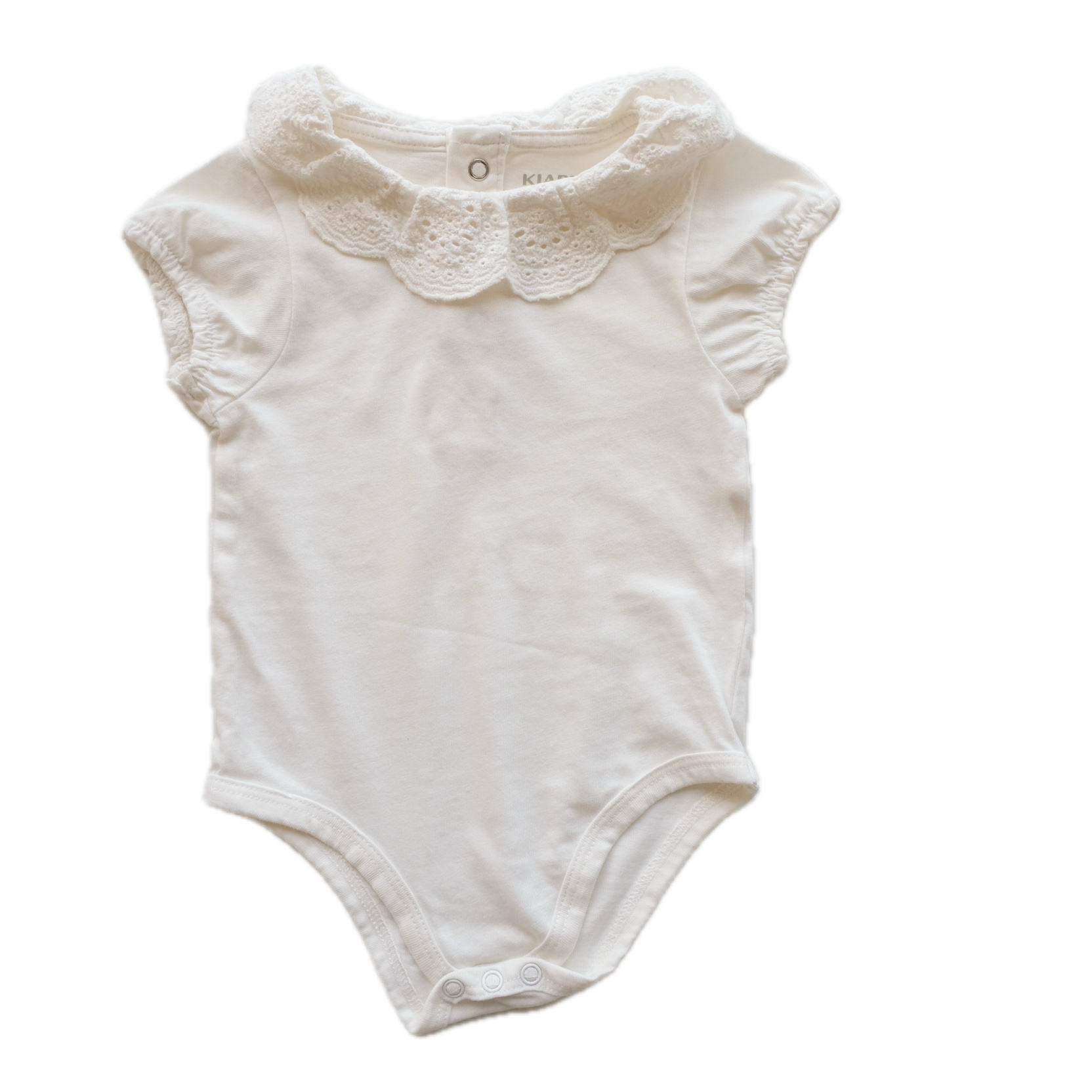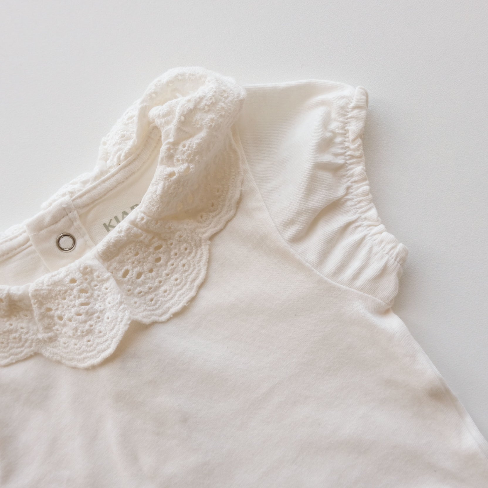 Body à manches courtes en coton, coloris écru. Joli col en broderies anglaises.