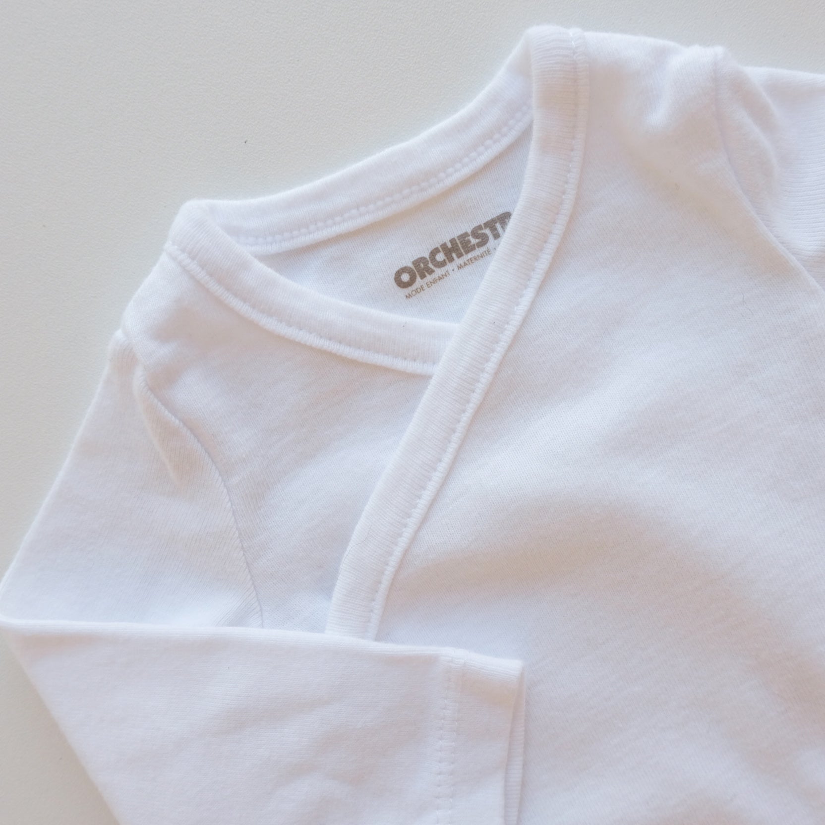 Body croisé à manches longues en coton, coloris blanc uni. Mixte.