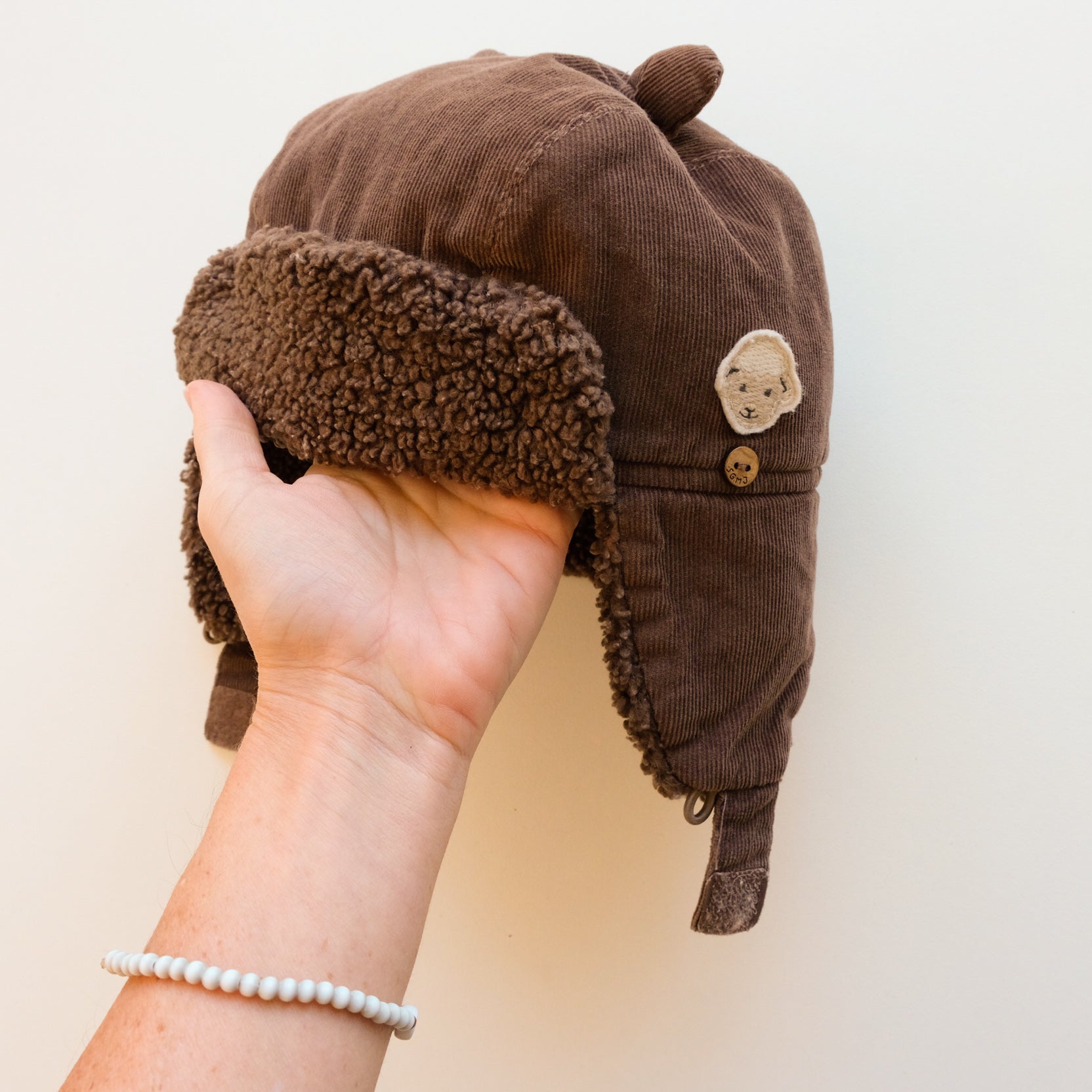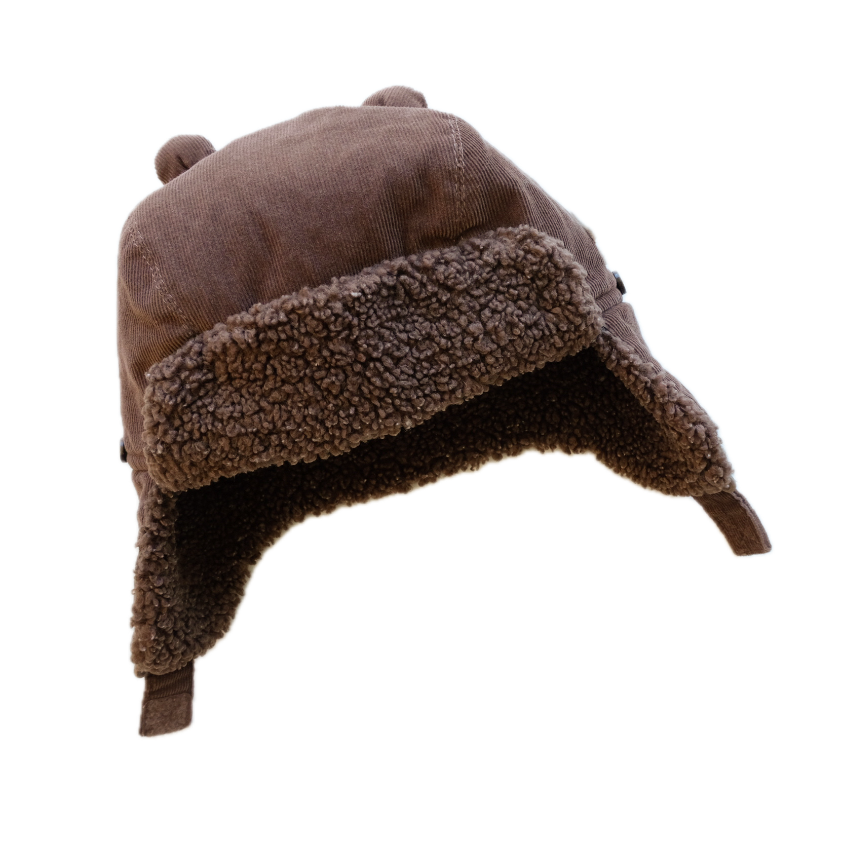 Chapka, bonnet de trappeur en velours côtelé et sherpa, coloris marron. Super mignon. Elle protège efficacement du froid.