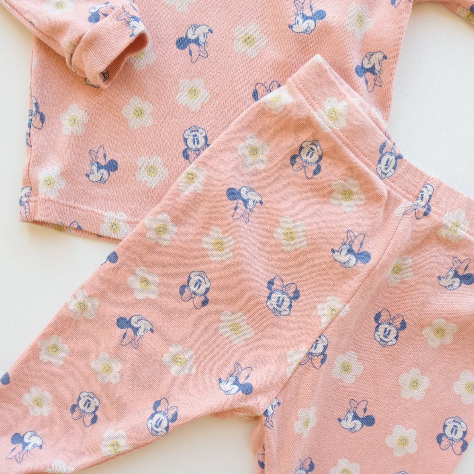 Ensemble Disney 2 pièces, comprenant : un t-shirt à manches longues et son petit legging assorti. Coloris rose, imprimé Minnie et fleurs all over.