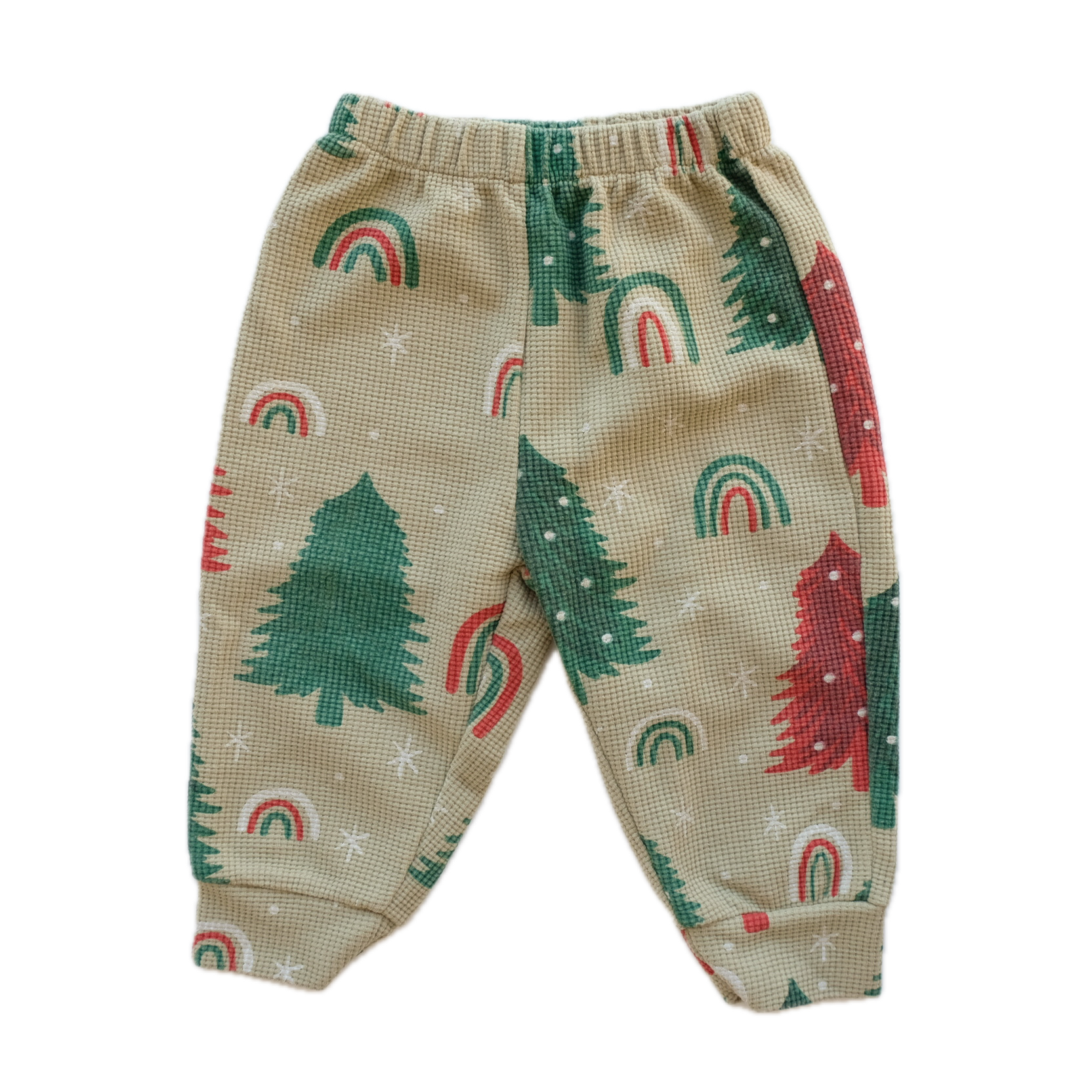 Jogger en coton gaufré, dans les tons vert et rouge, imprimé de noël all over. Super mignon !