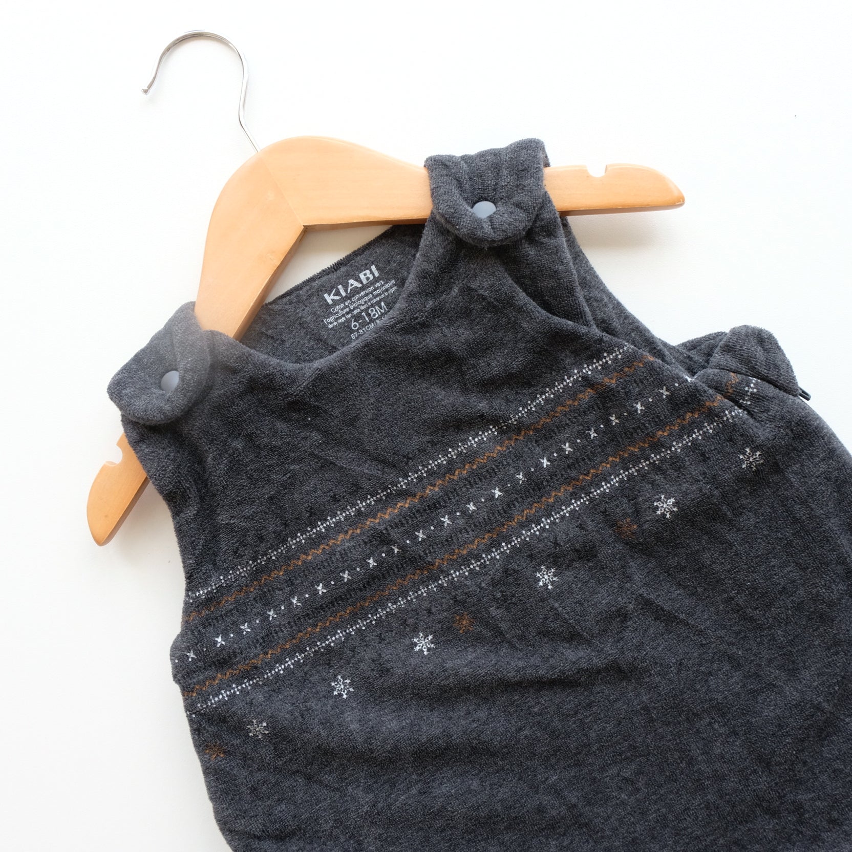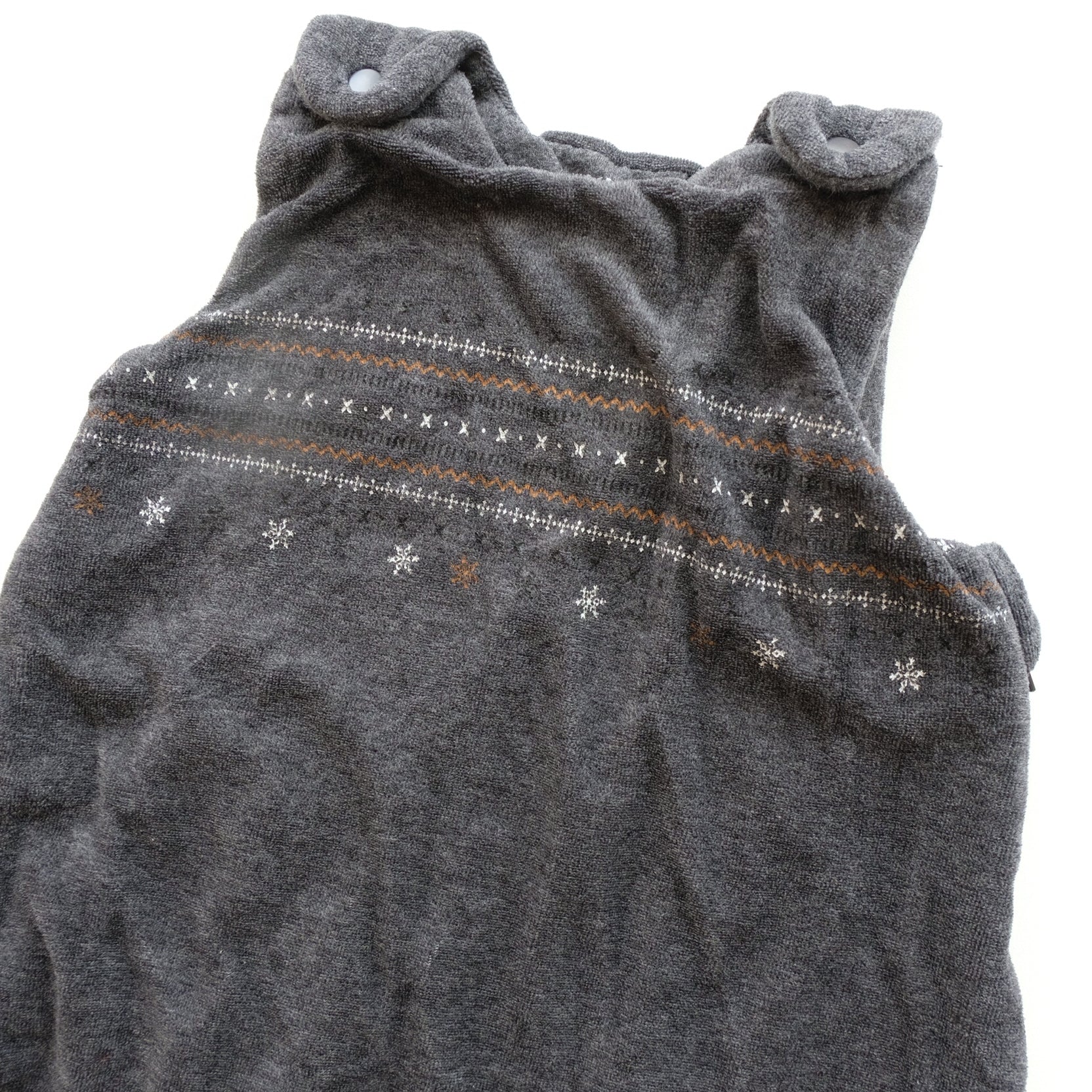 Gigoteuse hiver, en velours, coloris gris foncé. TOG : 2,5. Boutons pressions aux épaules et zip sur le côté.