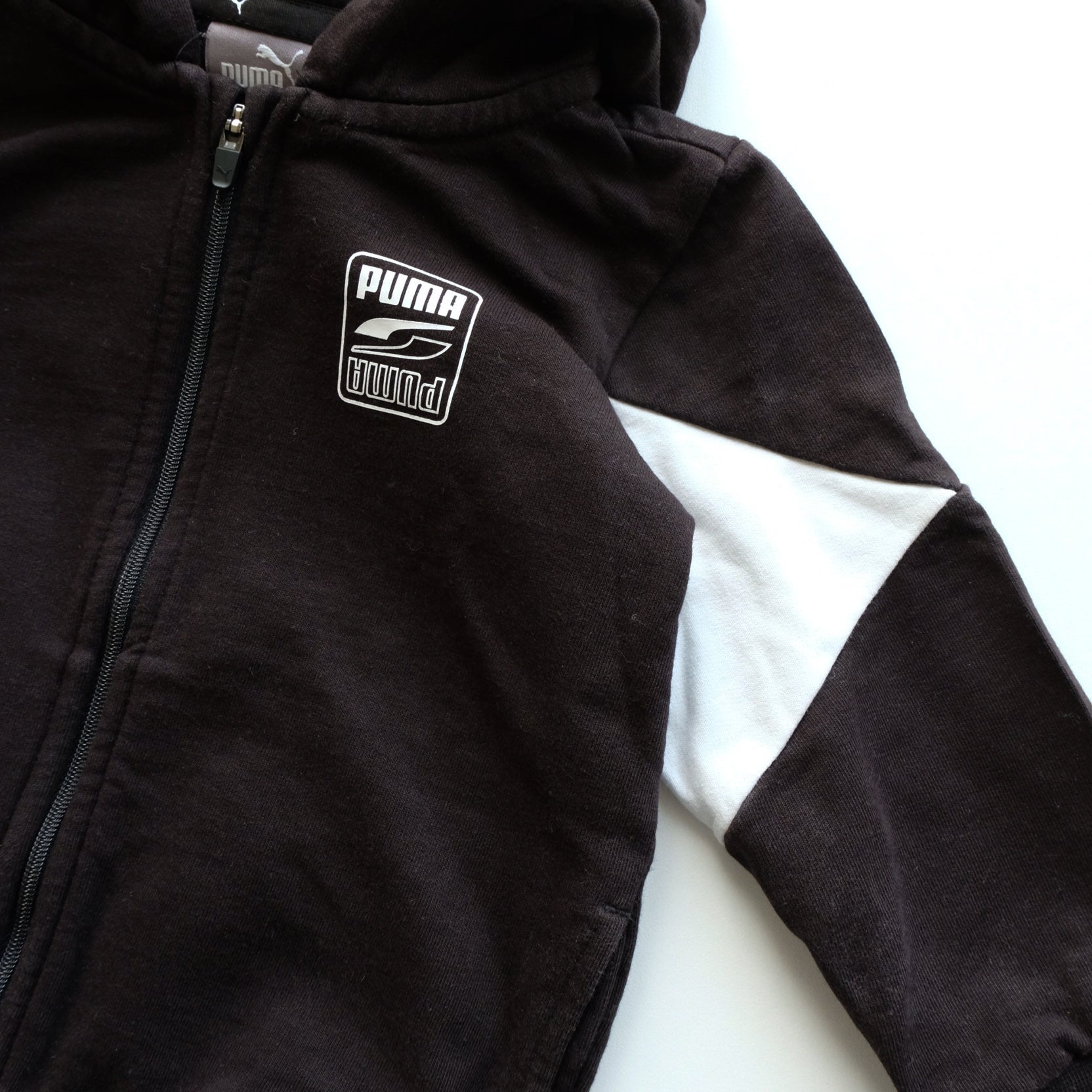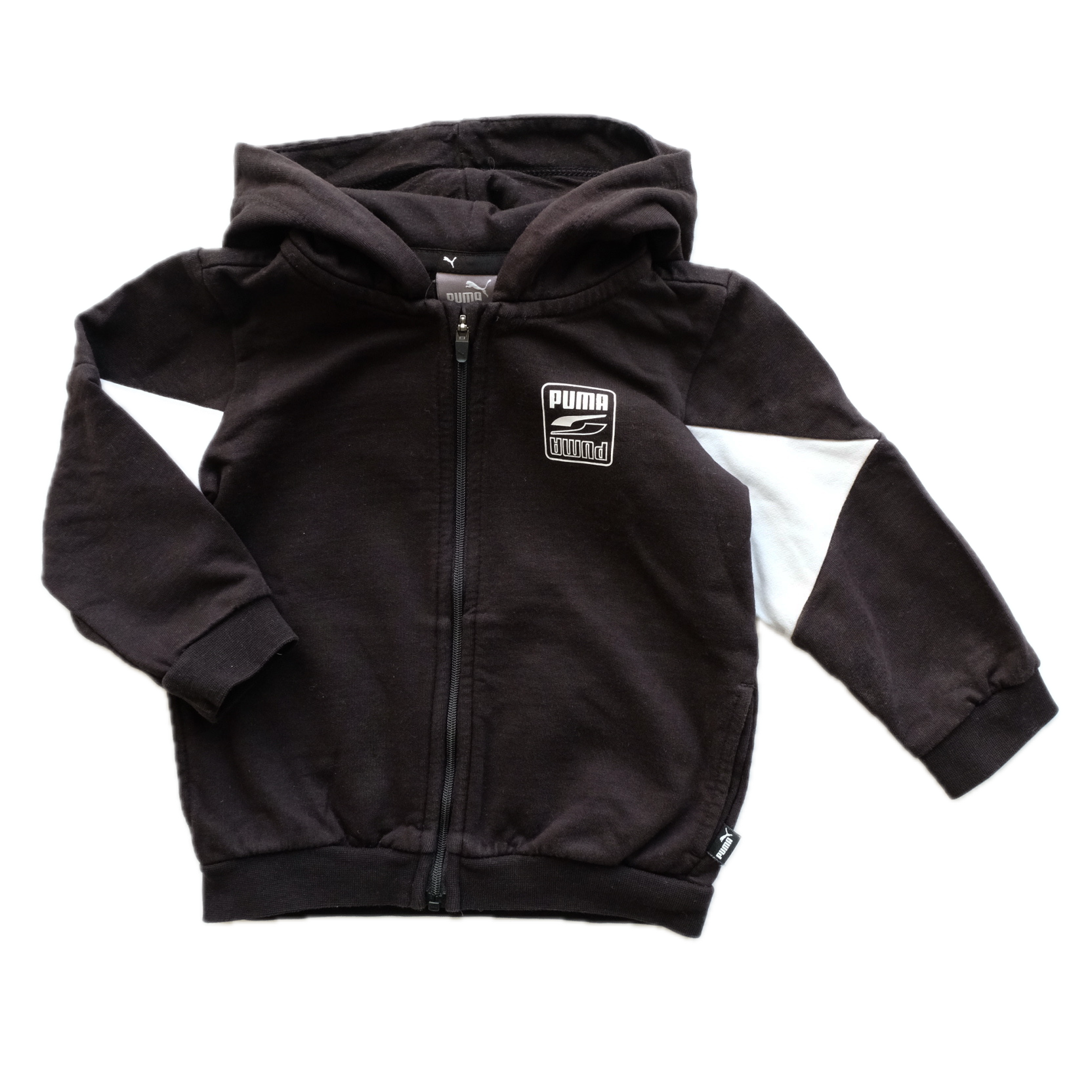 Sweat, gilet zippé au devant, avec capuche intégrée. Coloris noir blanc.