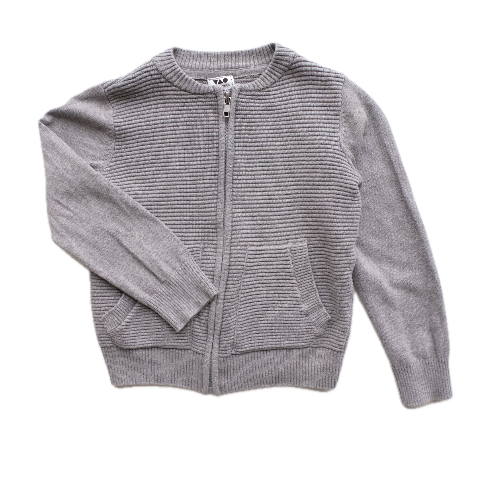 Gilet, maille côtelé, manches longues, coloris gris uni. Zip au devant.