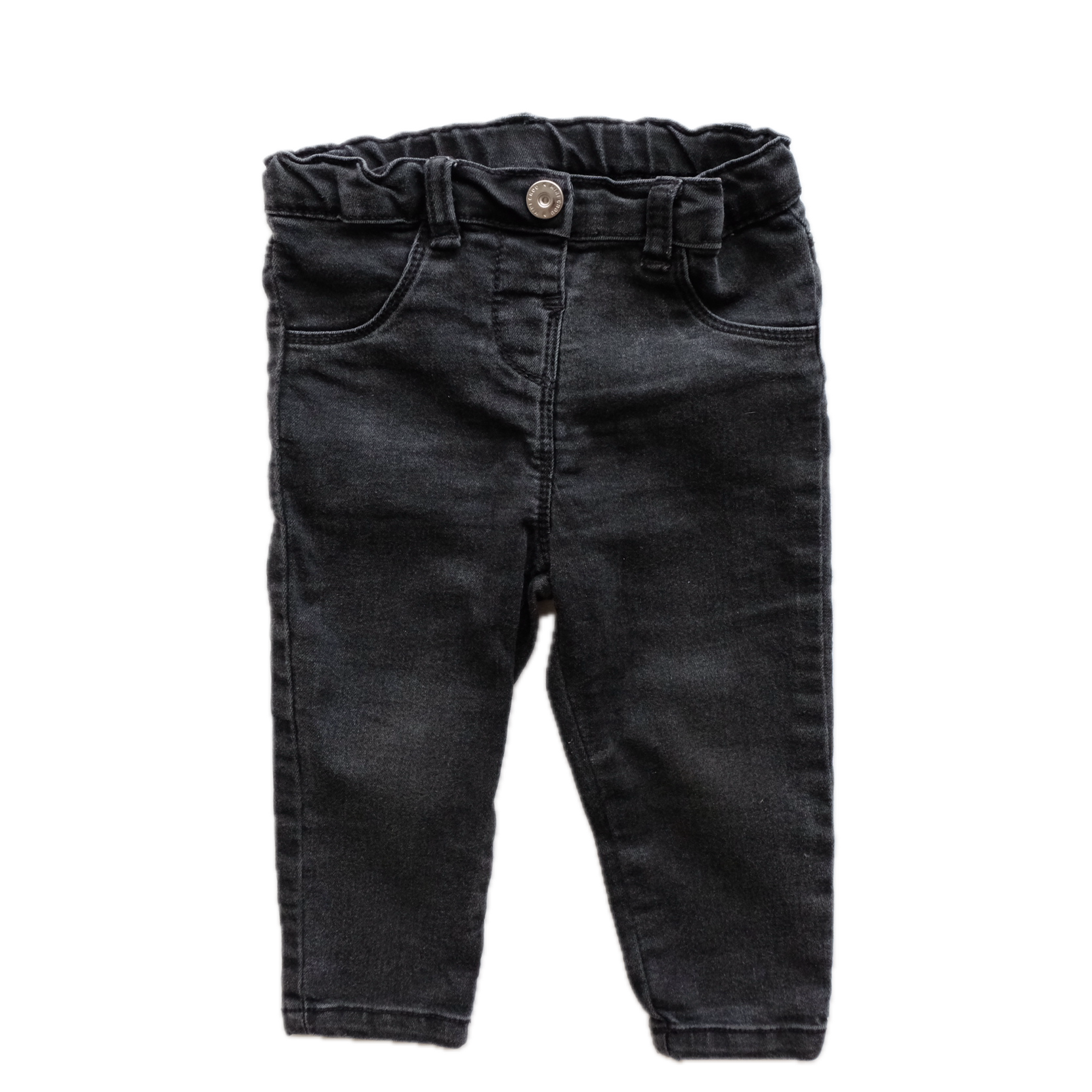 Pantalon, jean coloris noir, taille élastiquée ajustable.