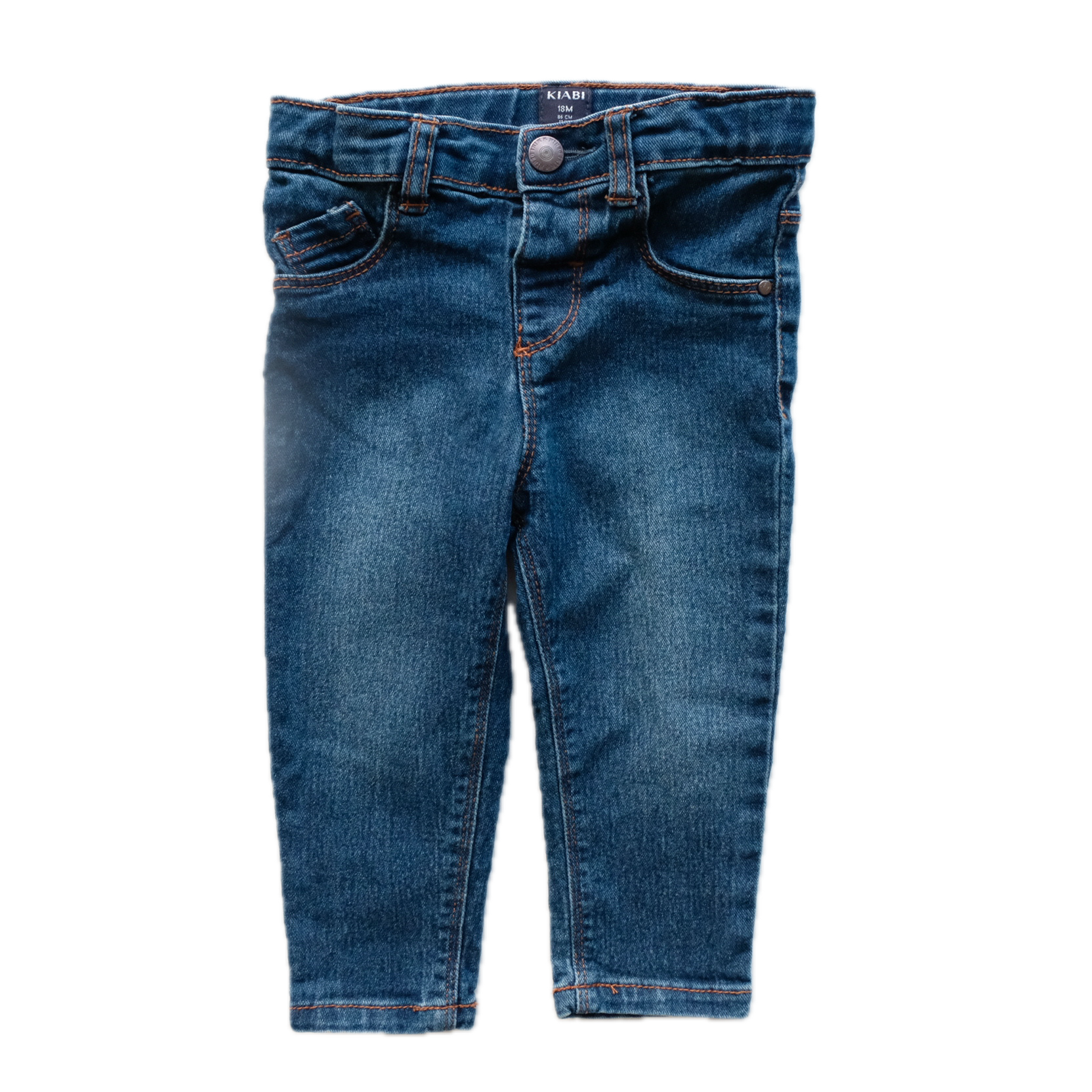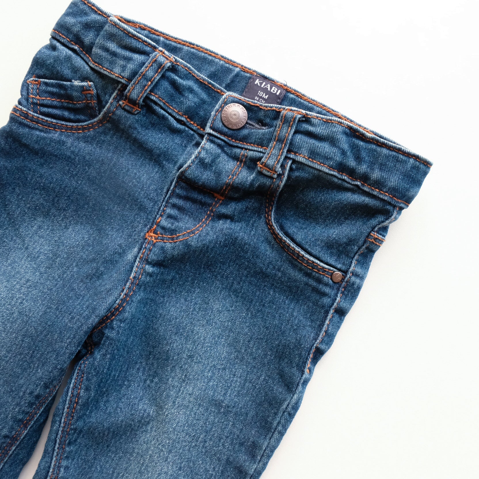 Jean slim coloris bleu foncé uni. Taille ajustable.