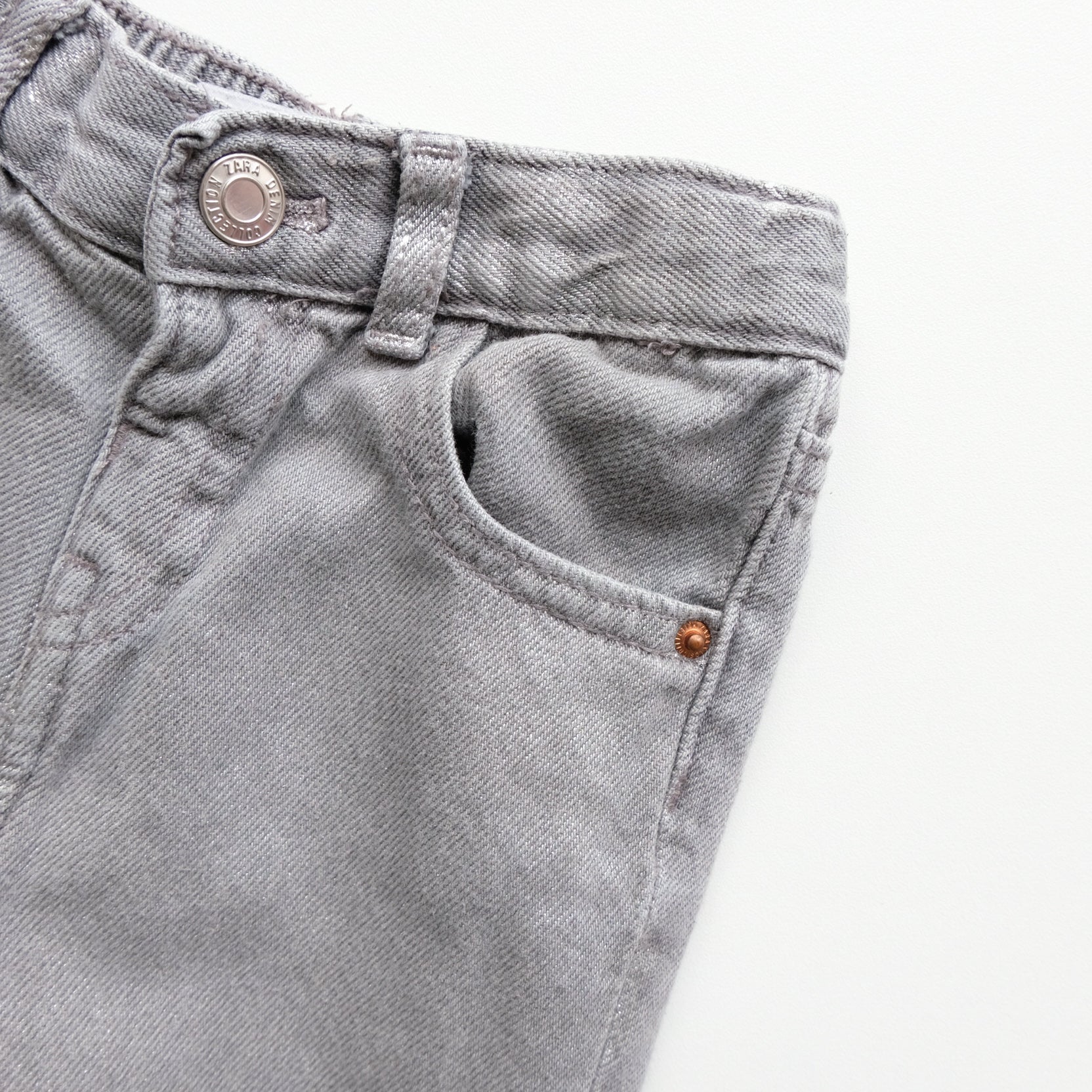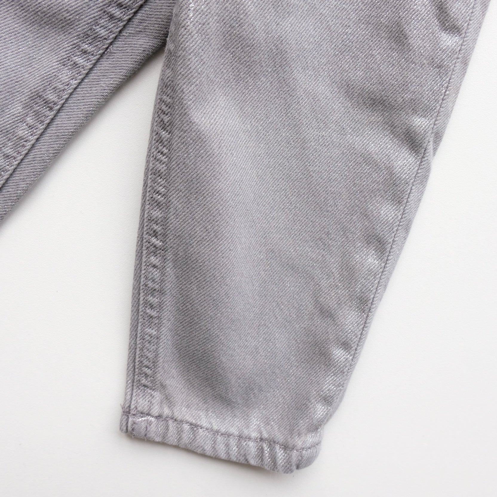 Jean coupe droite, coloris gris avec détails métallisés argentés. Taille ajustable. Très chouette !