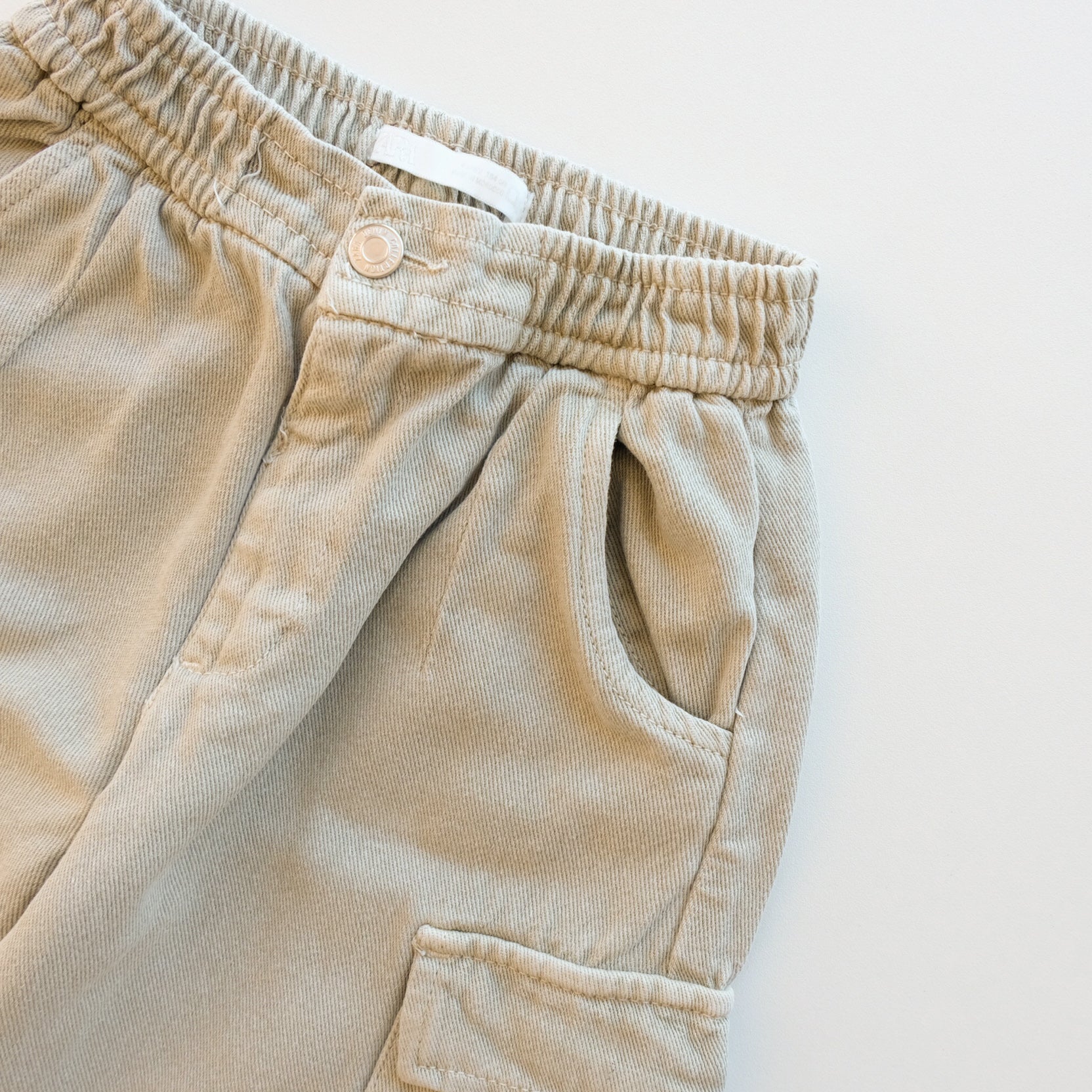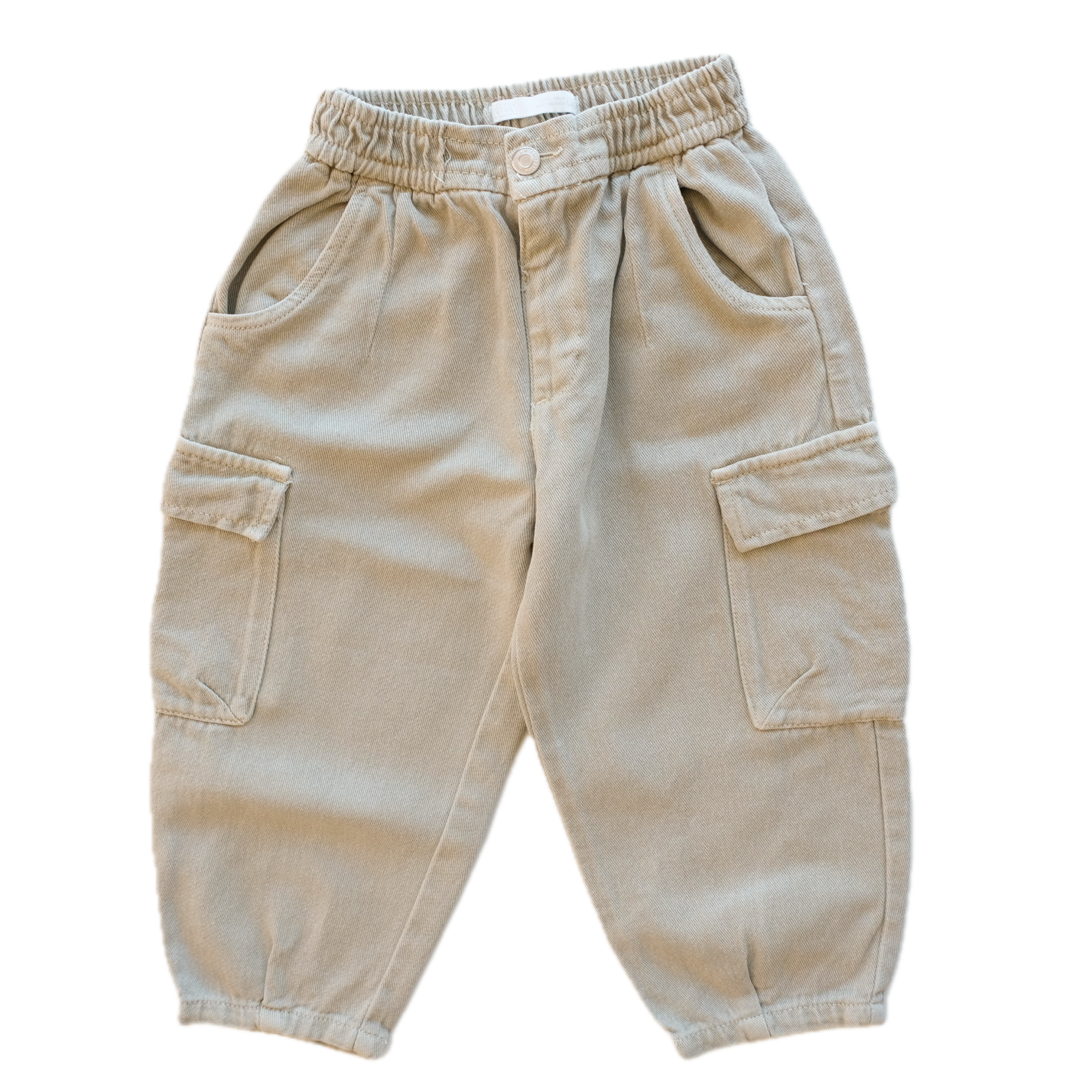 Jean coupe large confortable coloris beige léger tirant vert le menthe. Taille élastiquée avec bouton pressions. Poches sur les côtés. Très stylé !