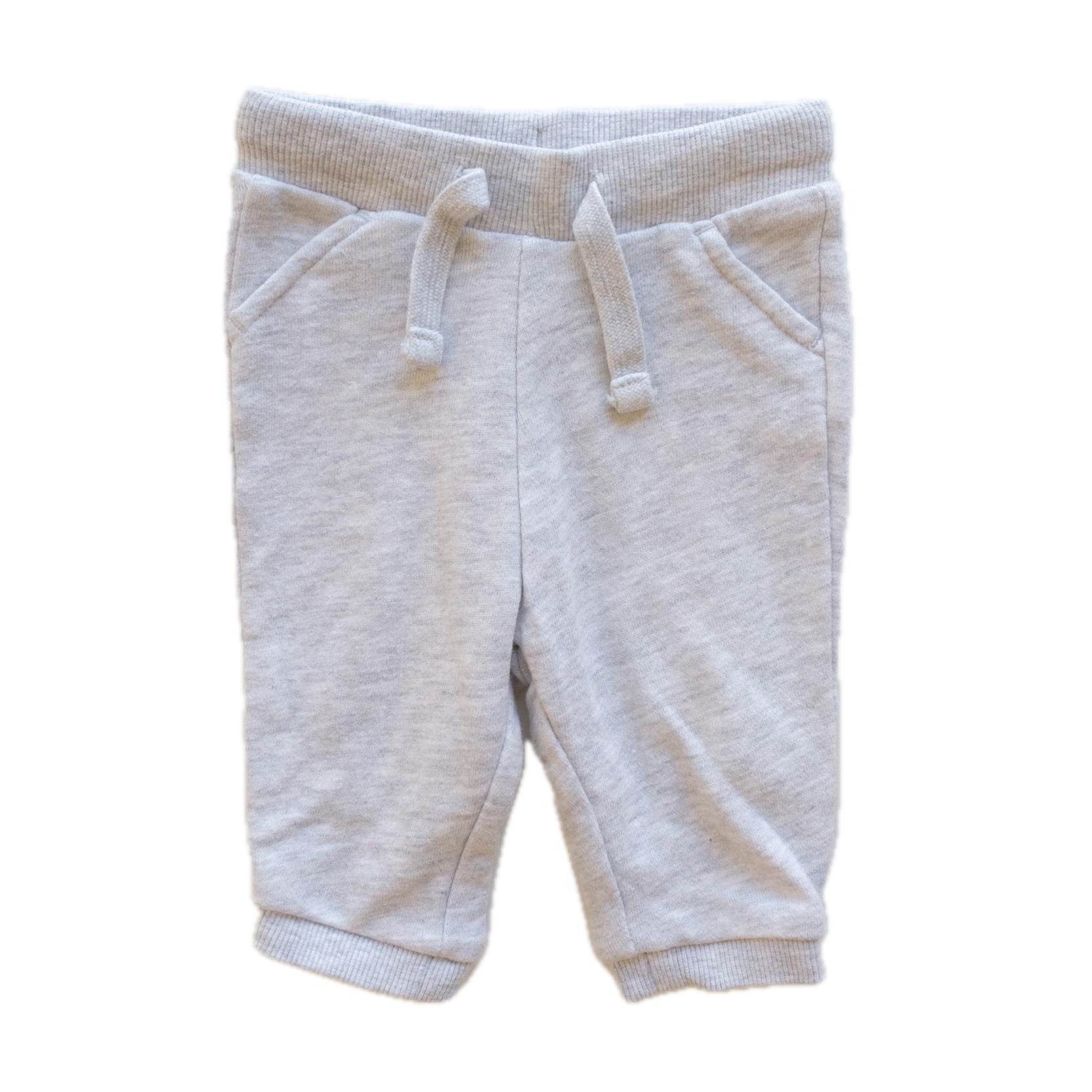 Pantalon, leeging, jogger coloris gris clair uni. Taille élastiquée + cordon de serrage. Mixte.