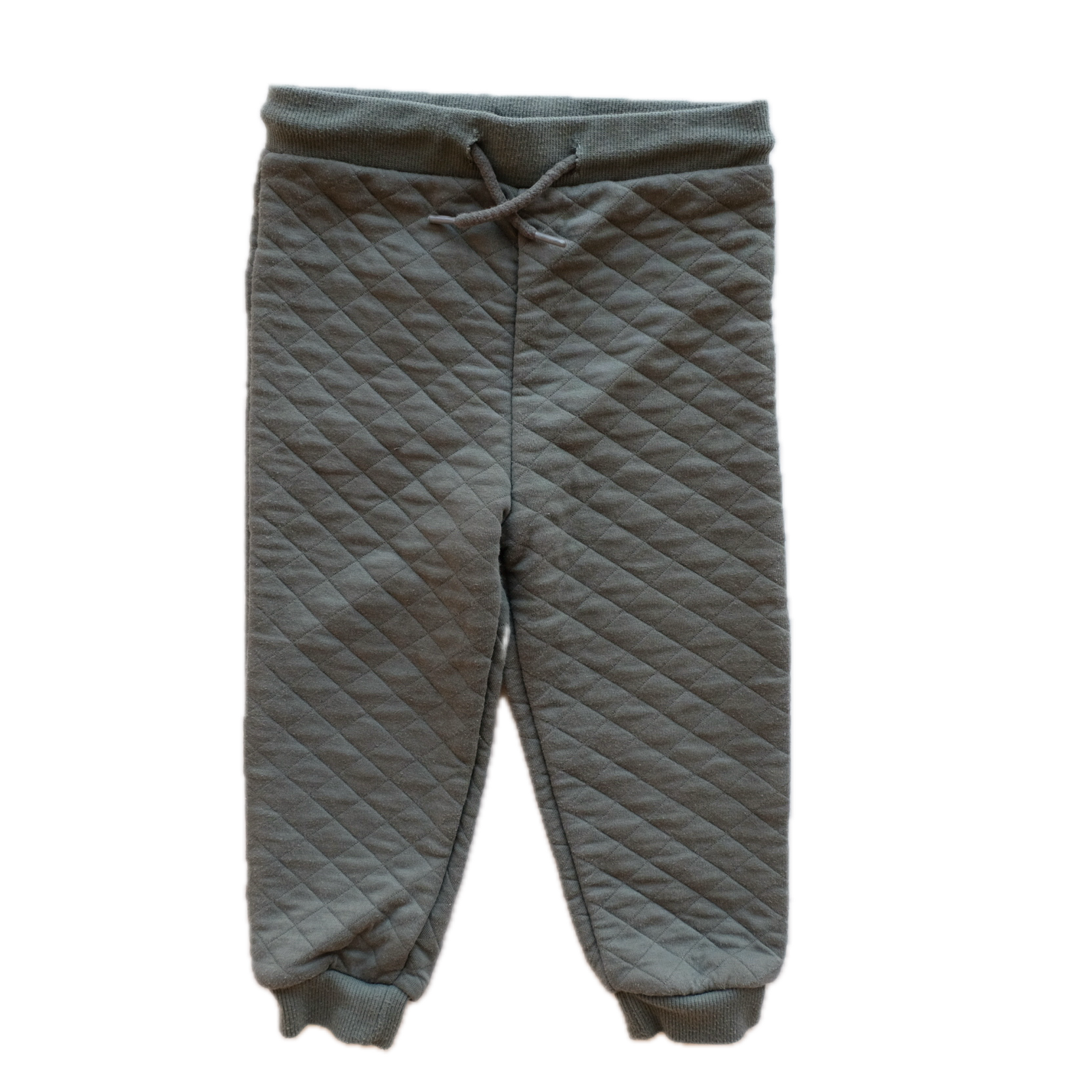 Jogger en coton matelassé coloris vert foncé. Finitions bords côtes. Cordon de serrage à la taille.