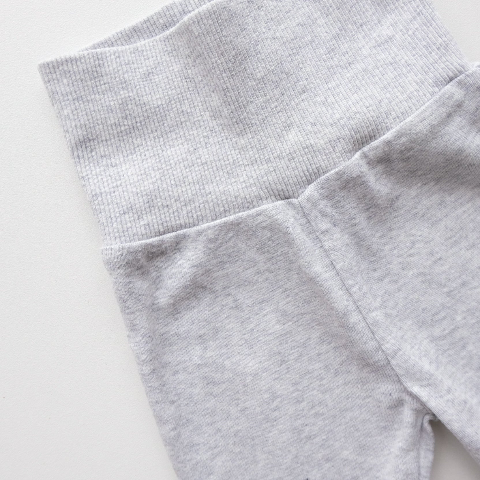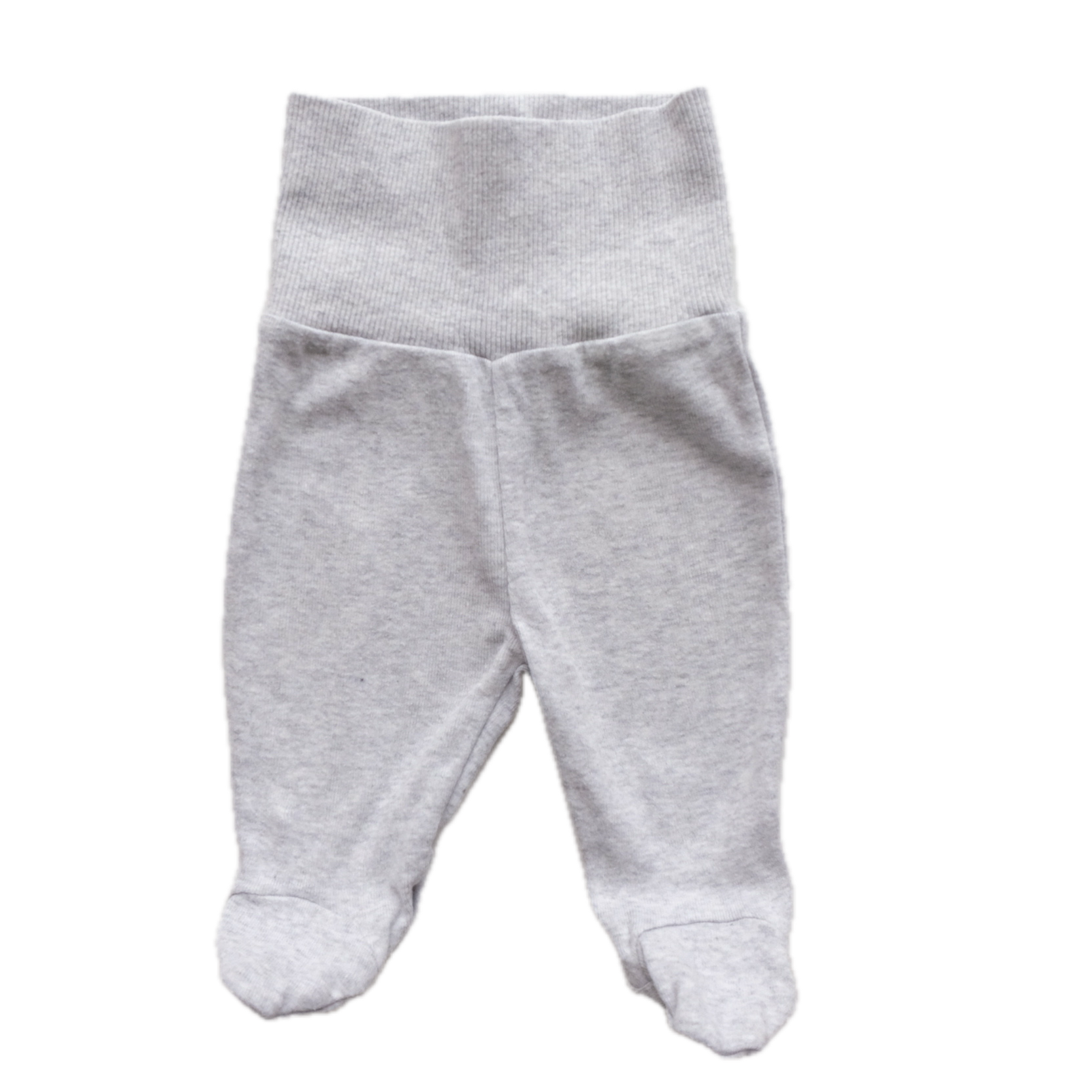 Legging avec pieds en coton biologique, coloris gris clair uni. Large élastique confortable au niveau du ventre. Mixte.