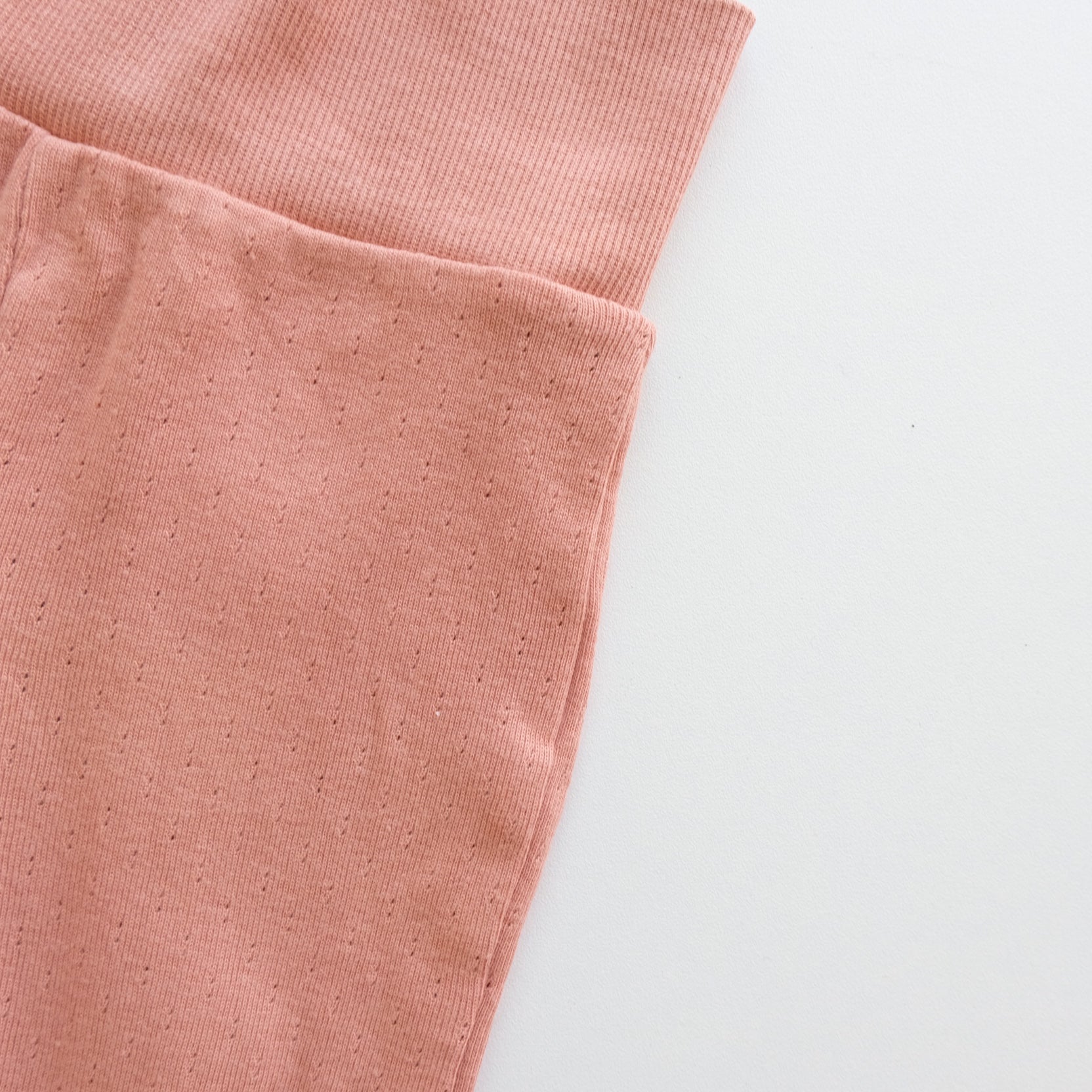 Legging avec pieds en coton, coloris vieux rose uni. Détails ajourés all over. Gros élastique confortable à la taille.