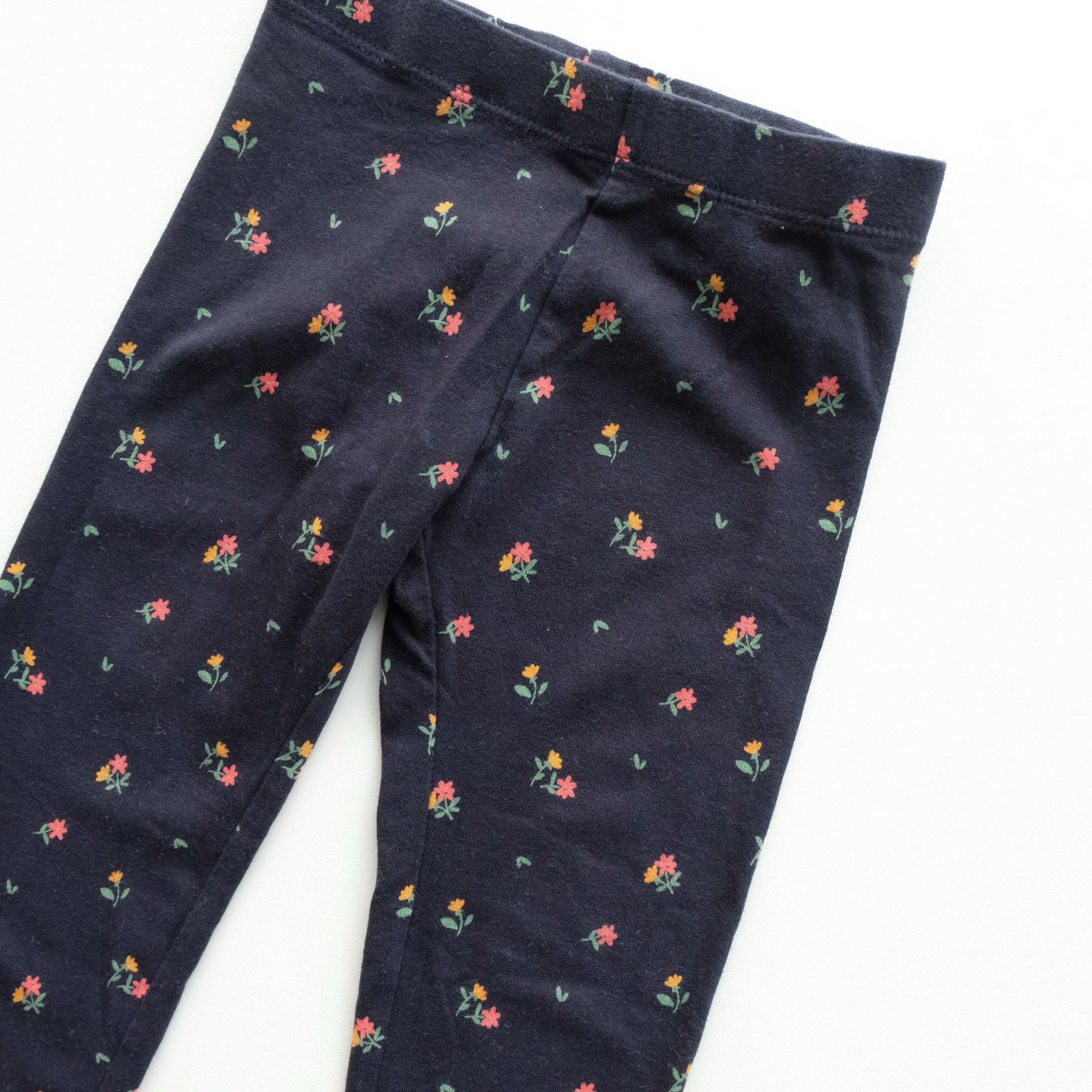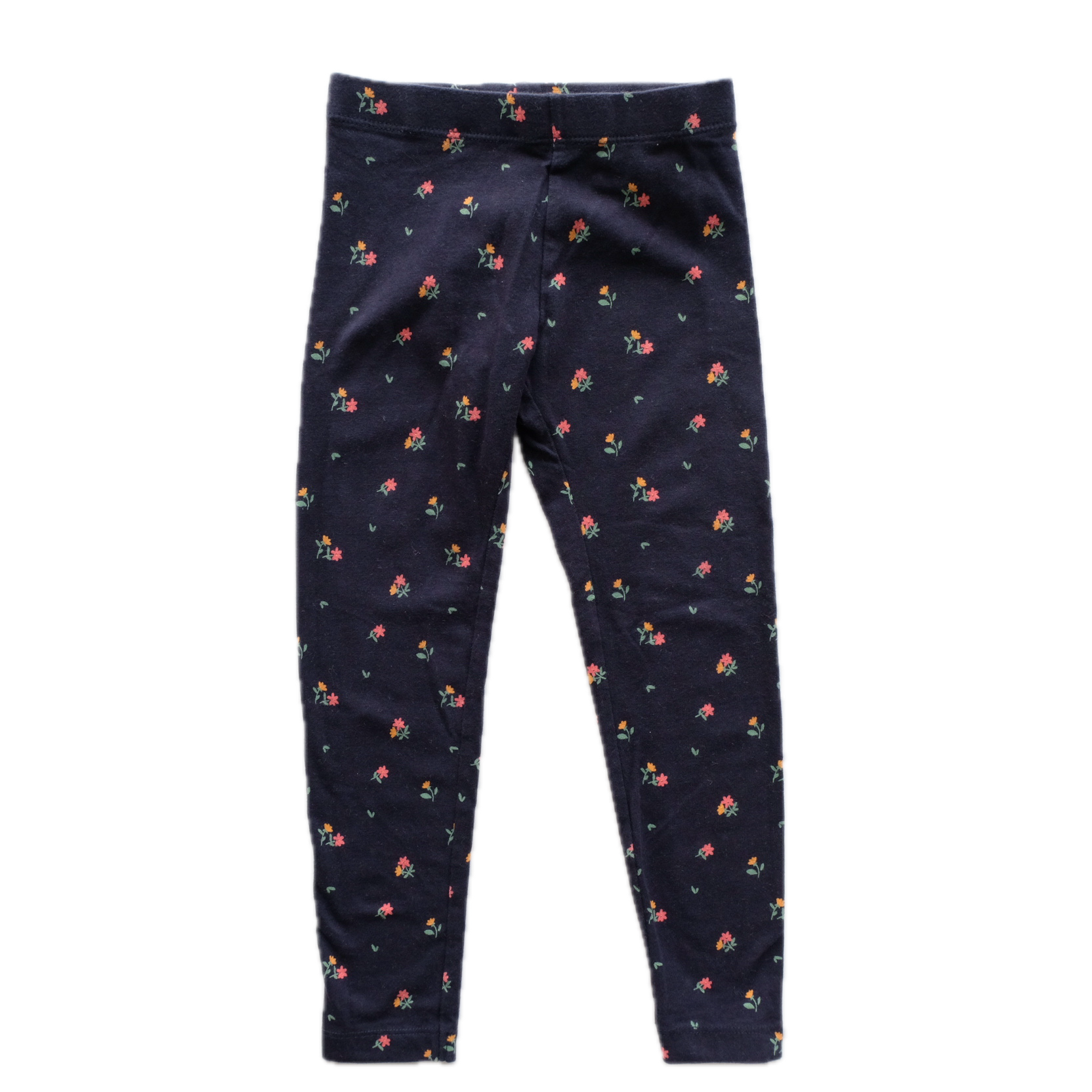 Legging en coton, coloris bleu marine, imprimé fleuri all over.