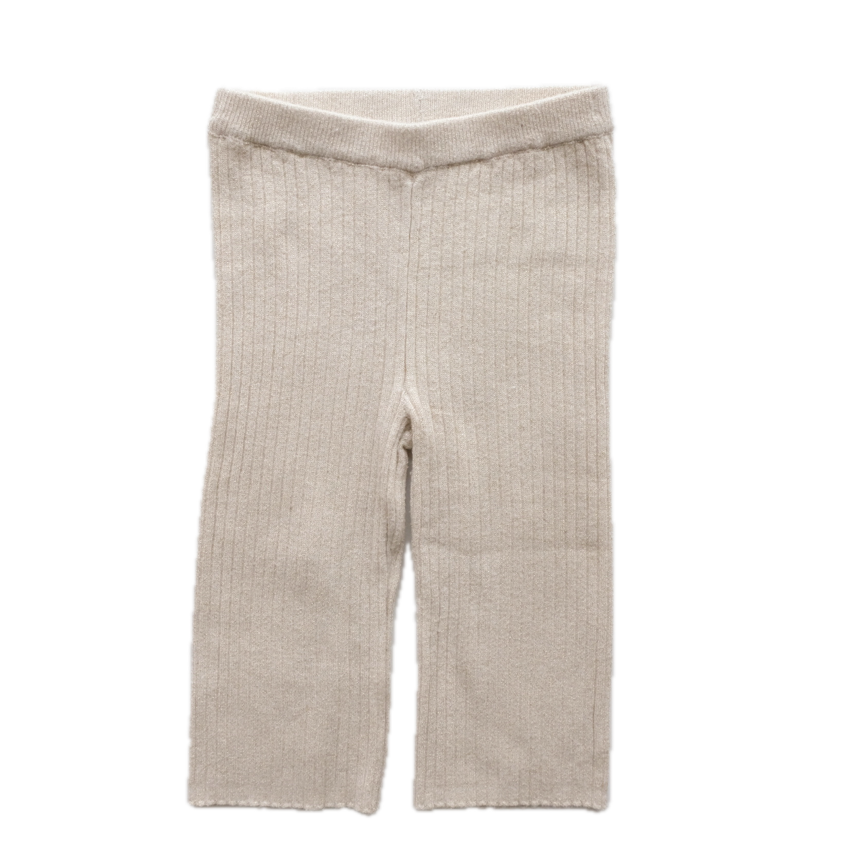 Legging en coton côtelé, maille coloris écru avec fils métallisés dorés. Coupe large. Tout mignon et confortable pour bébé.