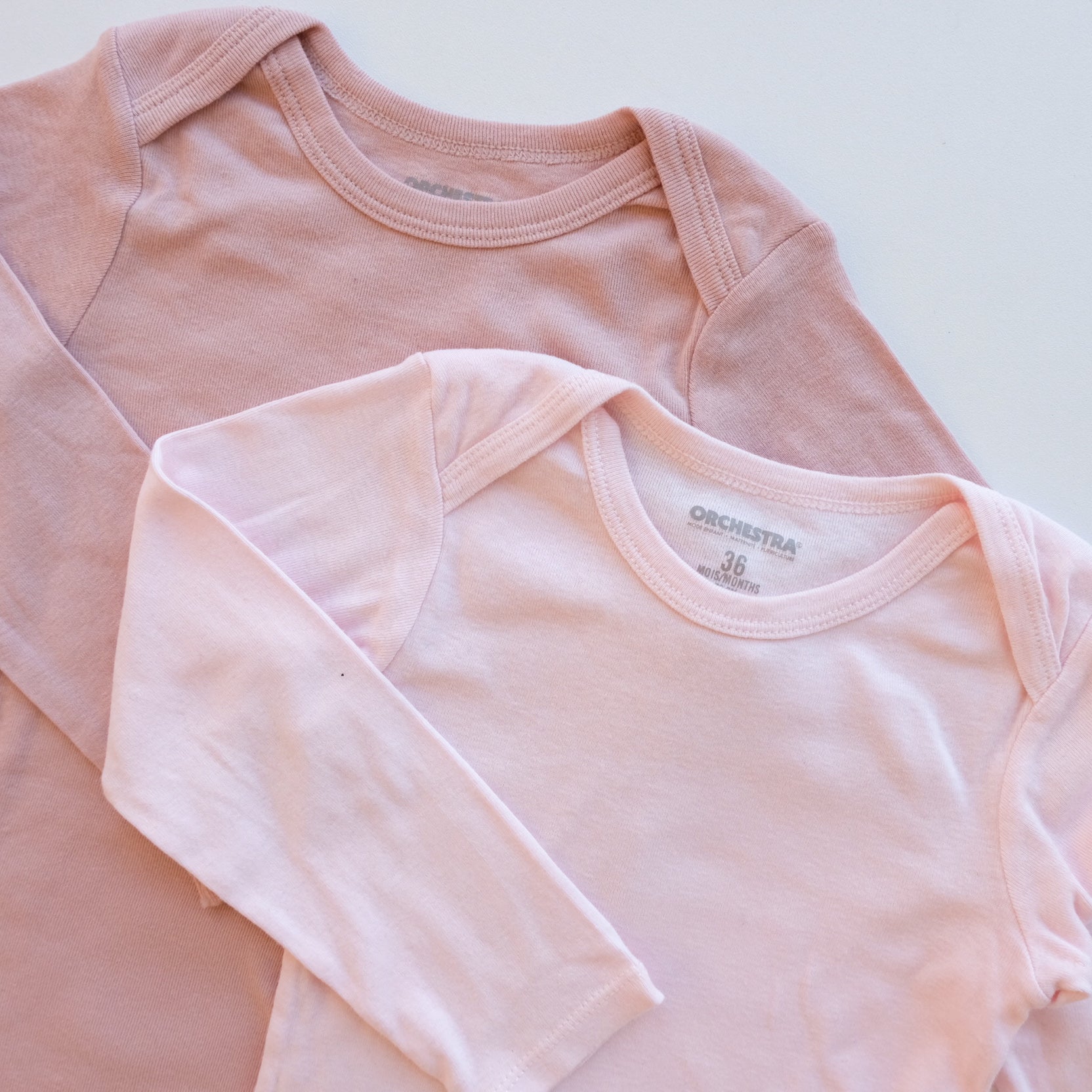 Lot de 2 bodies à manches longues en coton, encolure américaine. Coloris rose uni.