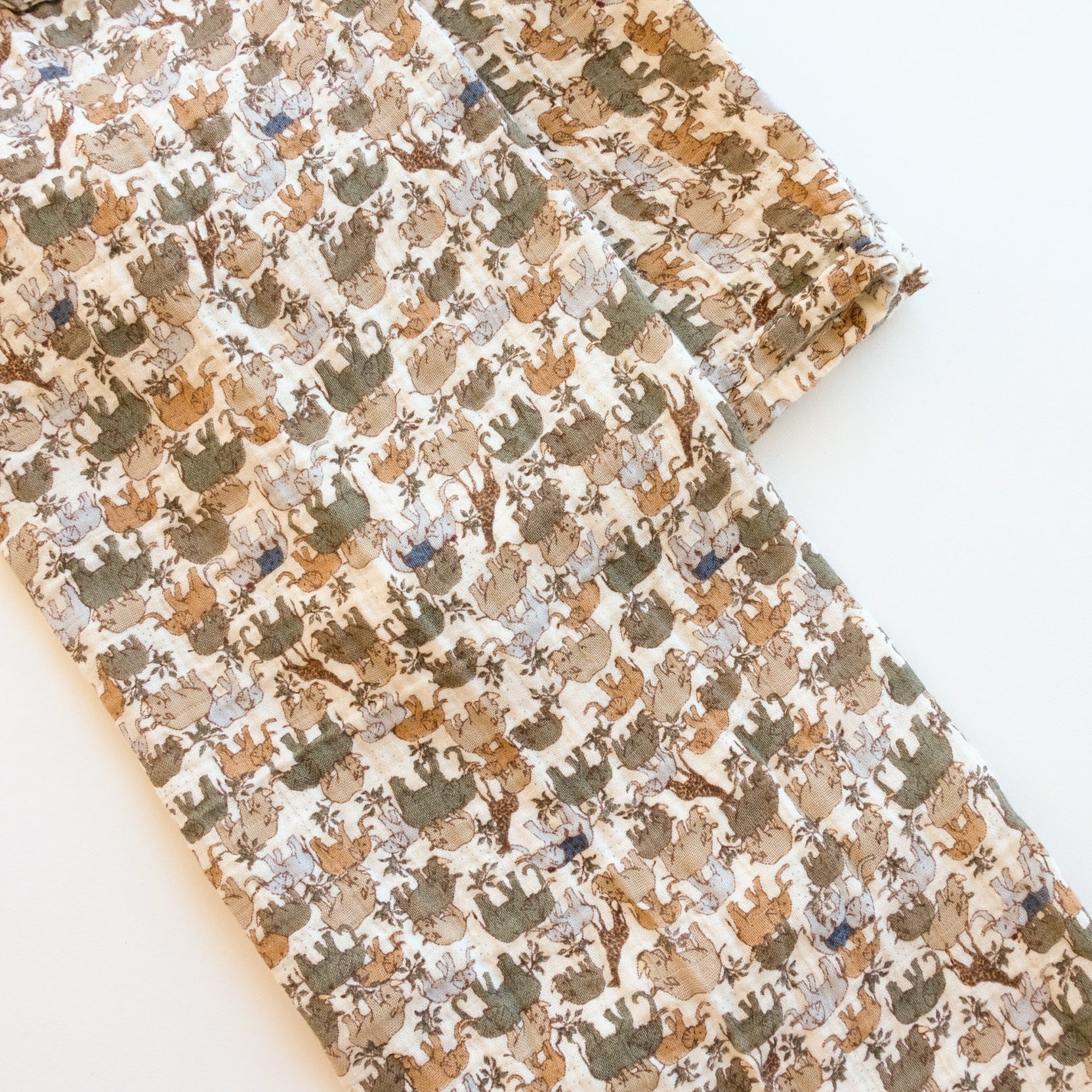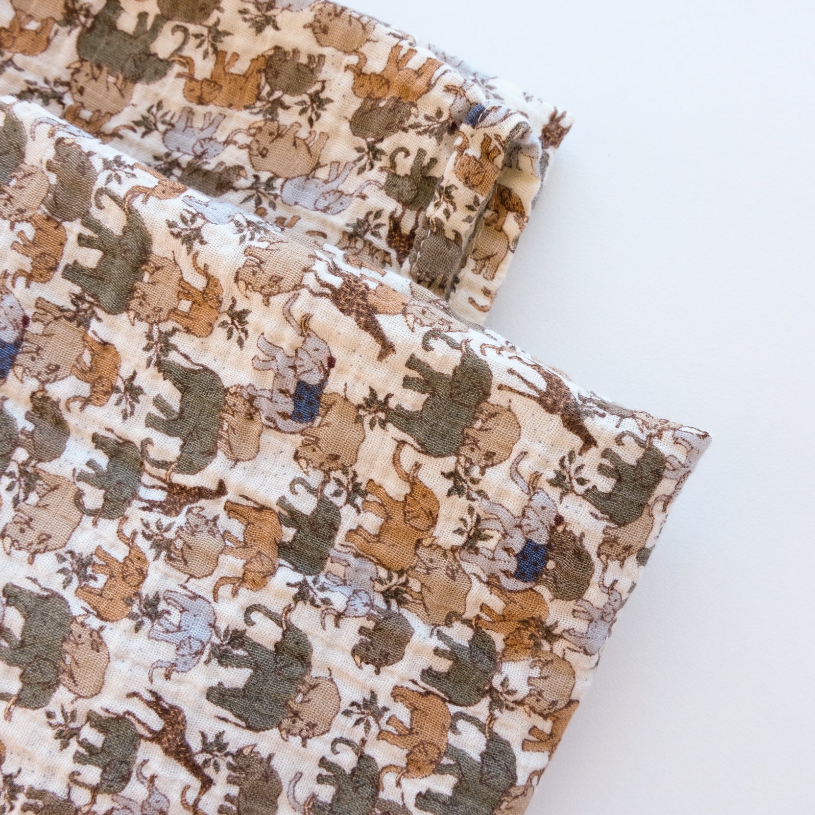 Lot de 2 langes en gaze de coton, coloris beige, imprimé animaux all over. Parfait état.
