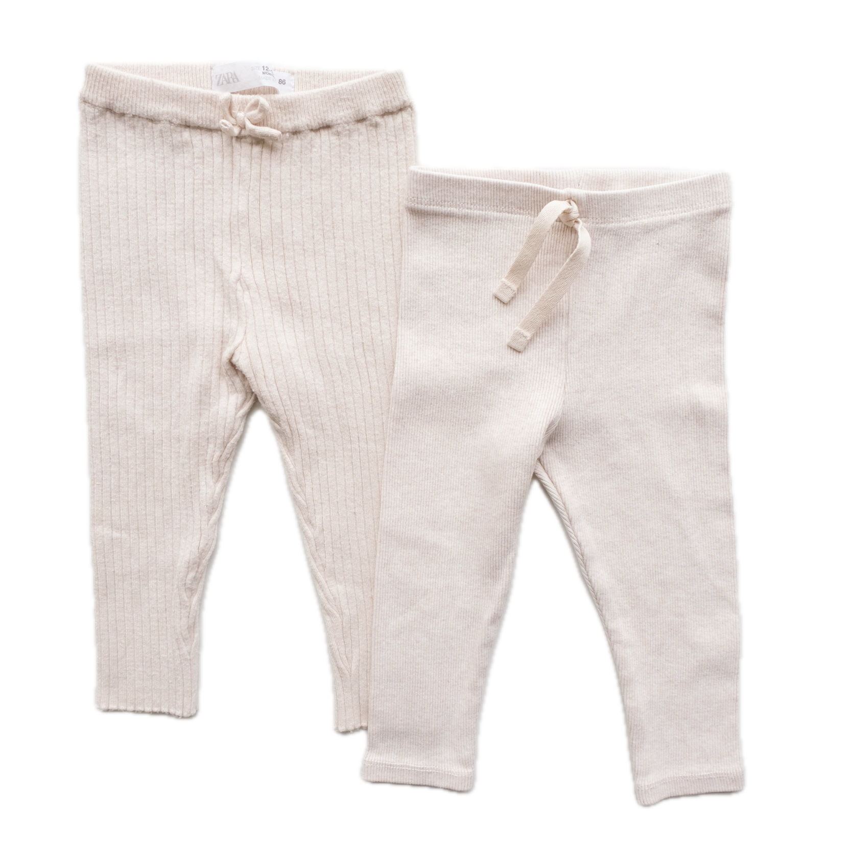 Lot de 2 legging coloris beige uni : un legging en coton côtelé, et un legging en maille côtelée. Mixte. Confortable pour bébé.