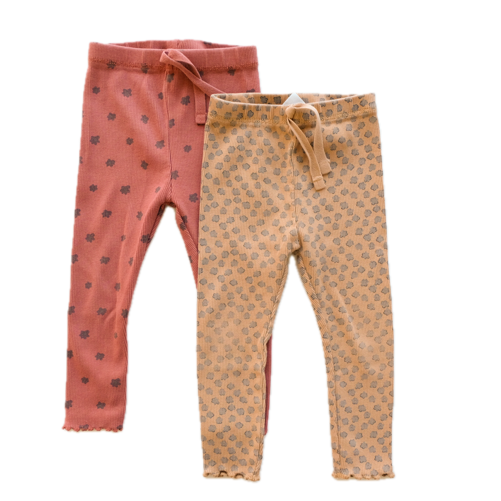 Lot de 2 legging en coton côtelé, coloris bordeaux et marron, imprimé petites fleurs all over.
