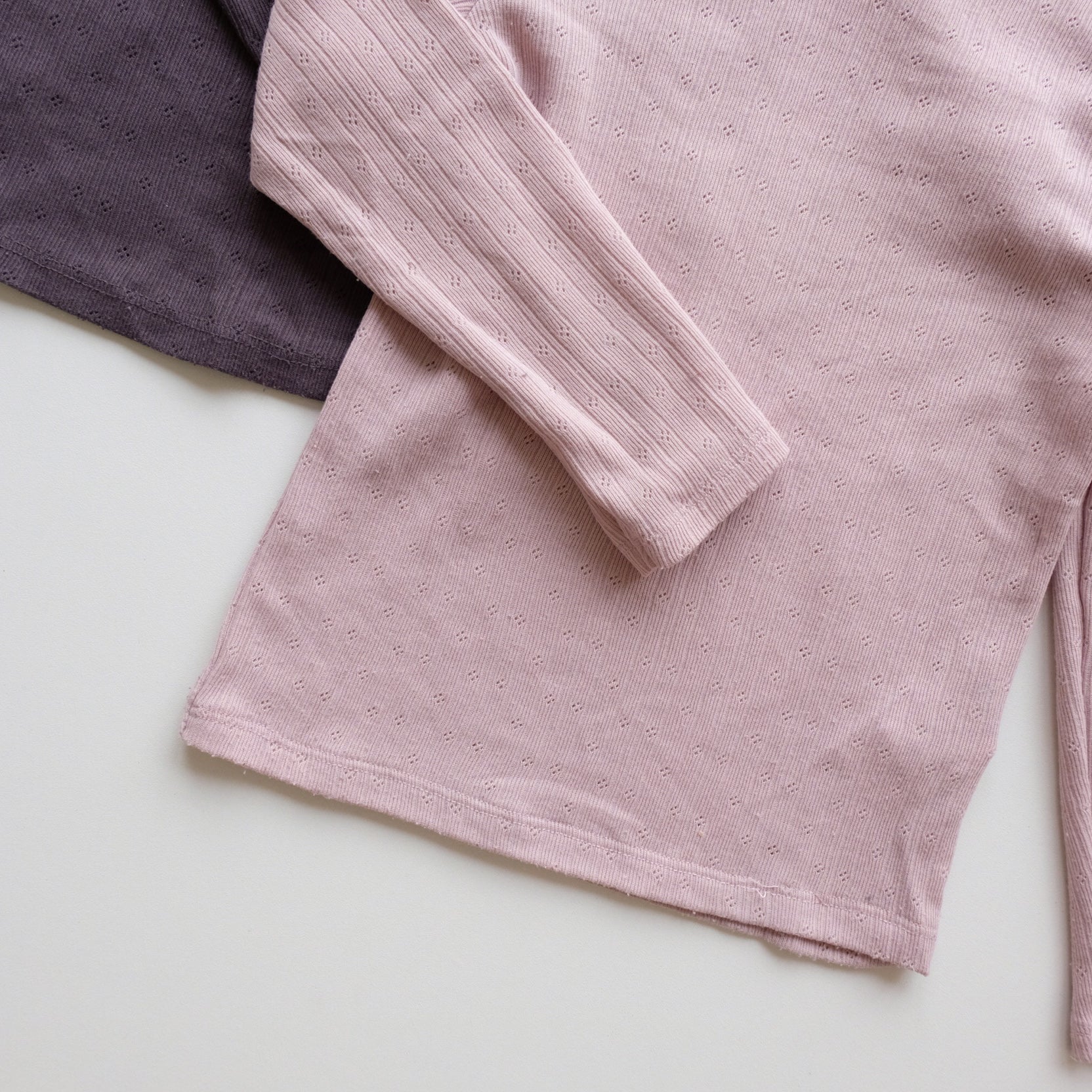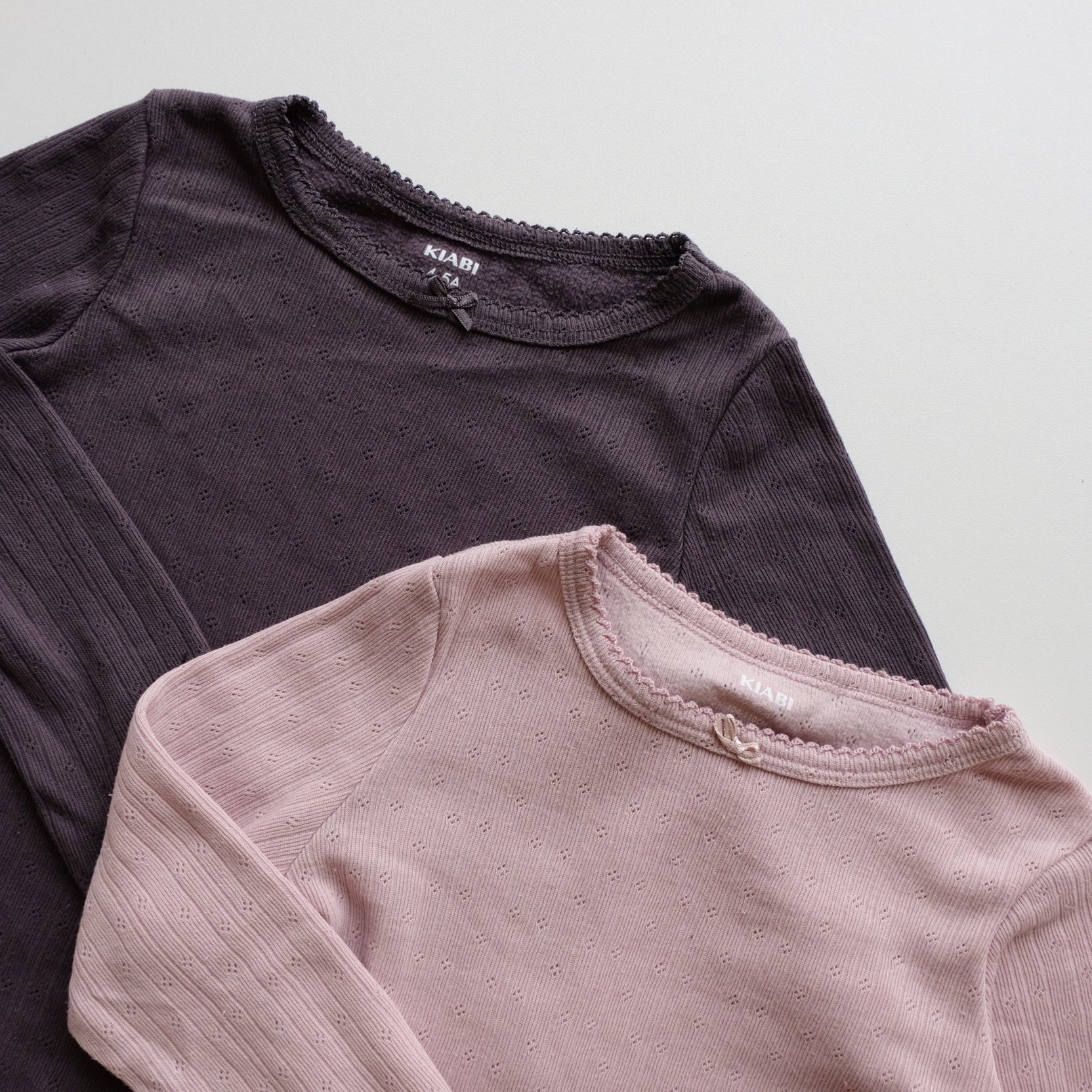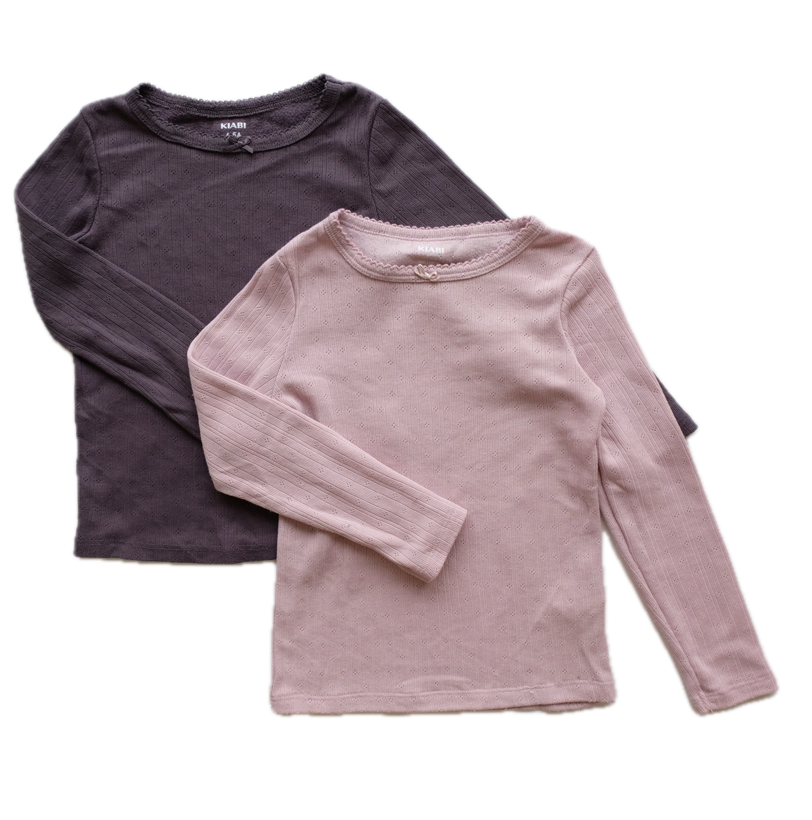 Lot de 2 maillots près du corps, chauds (doublure intérieure en molleton), coton ajouré, coloris lilas et gris foncé. Petits noeuds fantaisie au col.