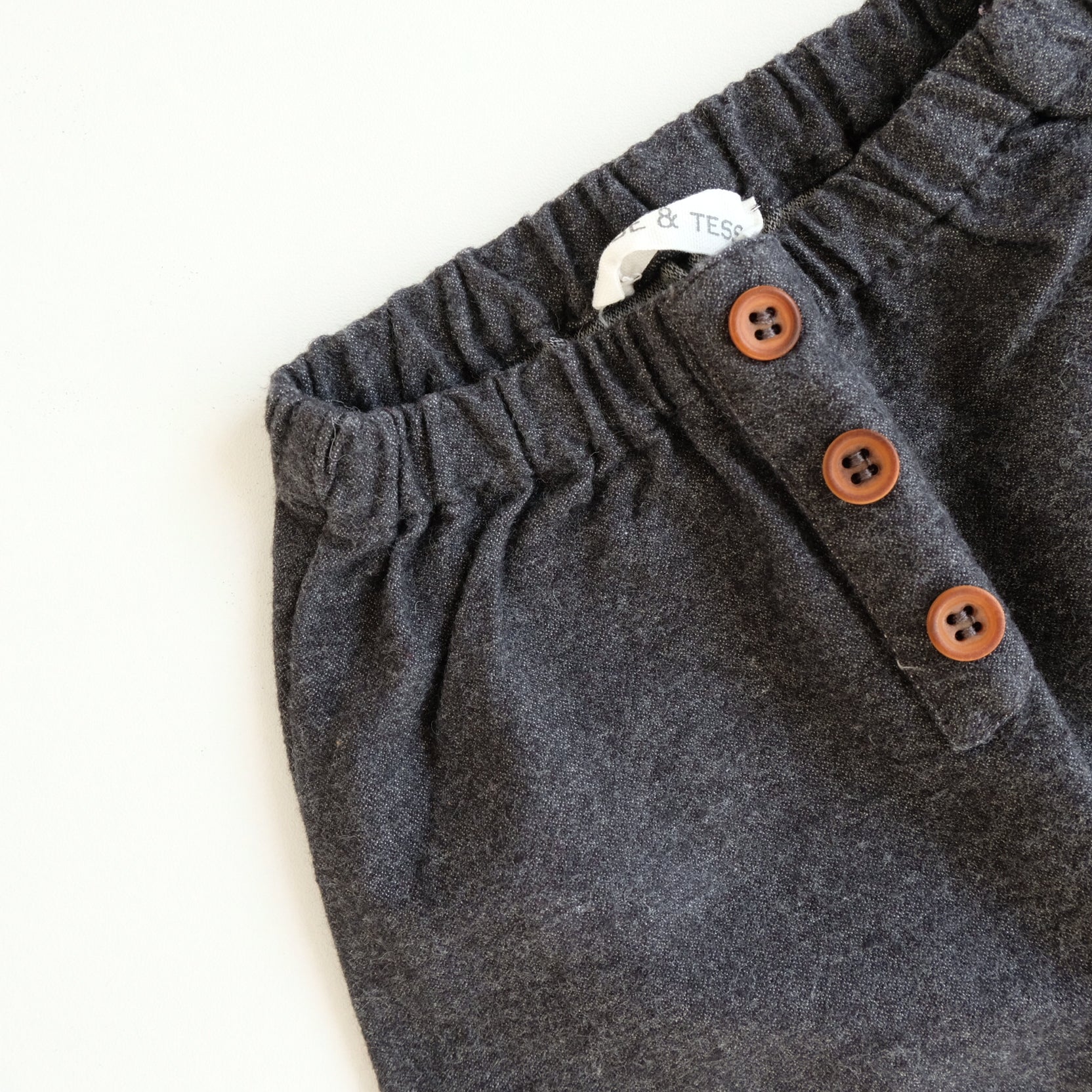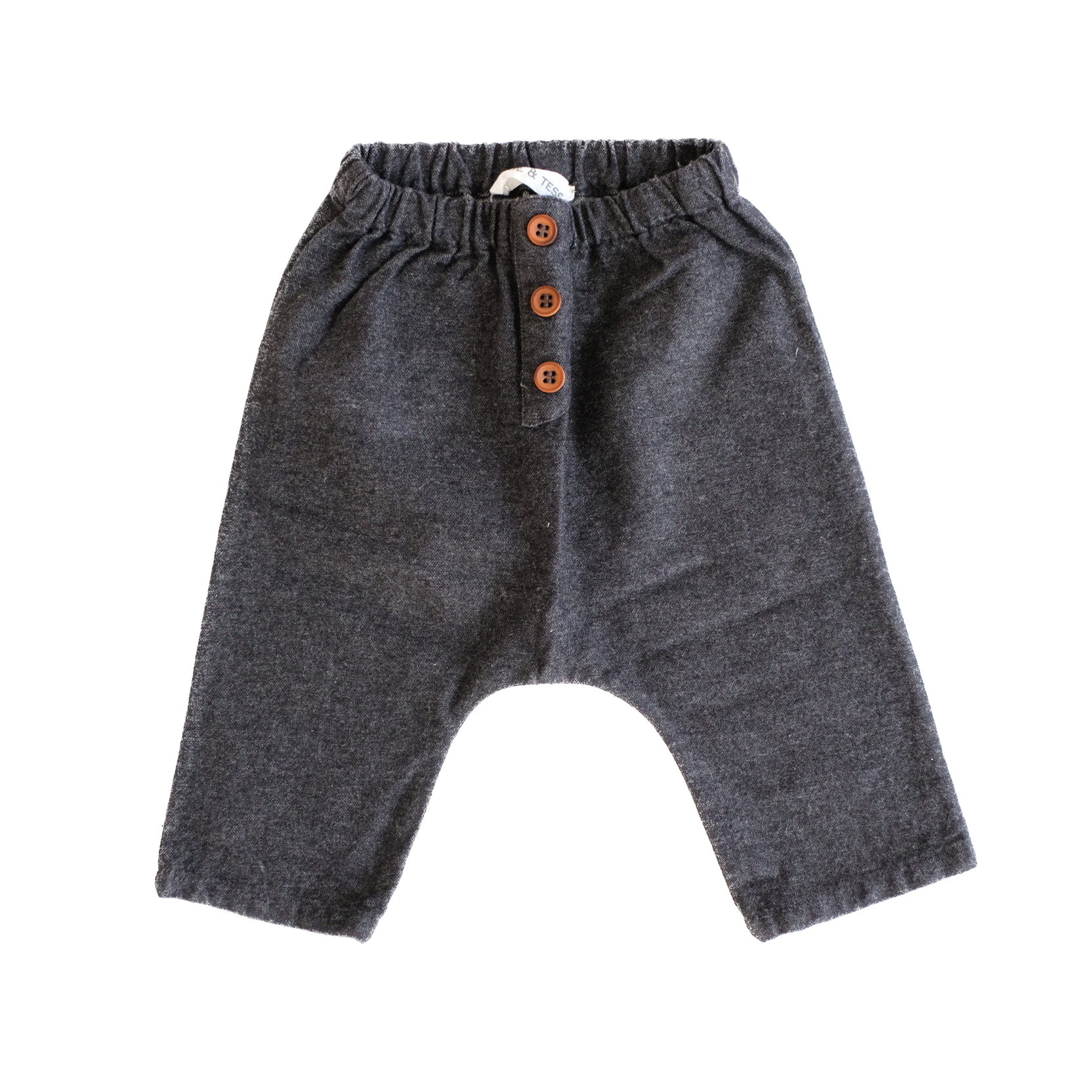Pantalon en coton, esprit sarouel. Taille élastique. Coloris gris foncé.