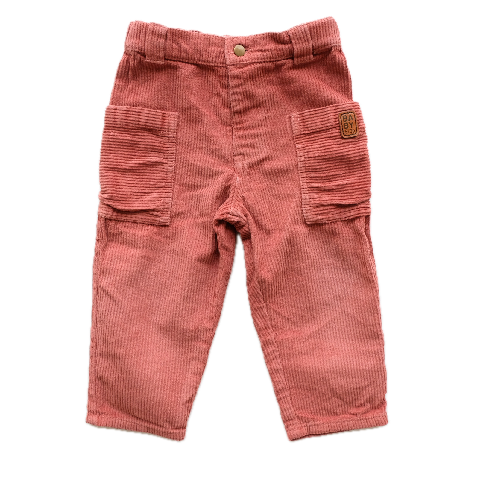Pantalon en velours côtelé, coloris vieux rose. Taille élastiquée ajustable. Deux poches sur les côtés.