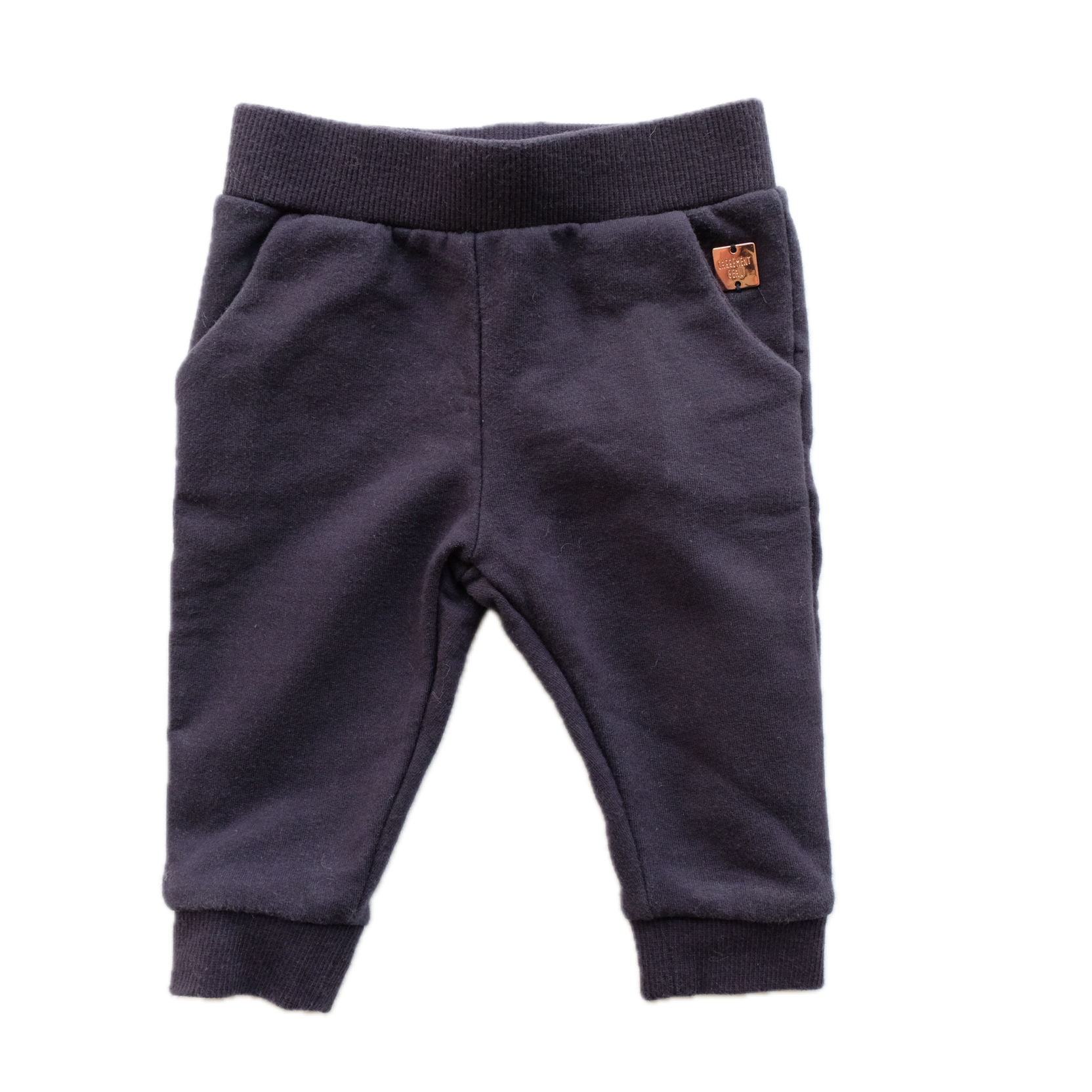 Pantalon, jogger en coton, intérieure en molleton, coloris bleu marine uni. Confortable pour bébé.