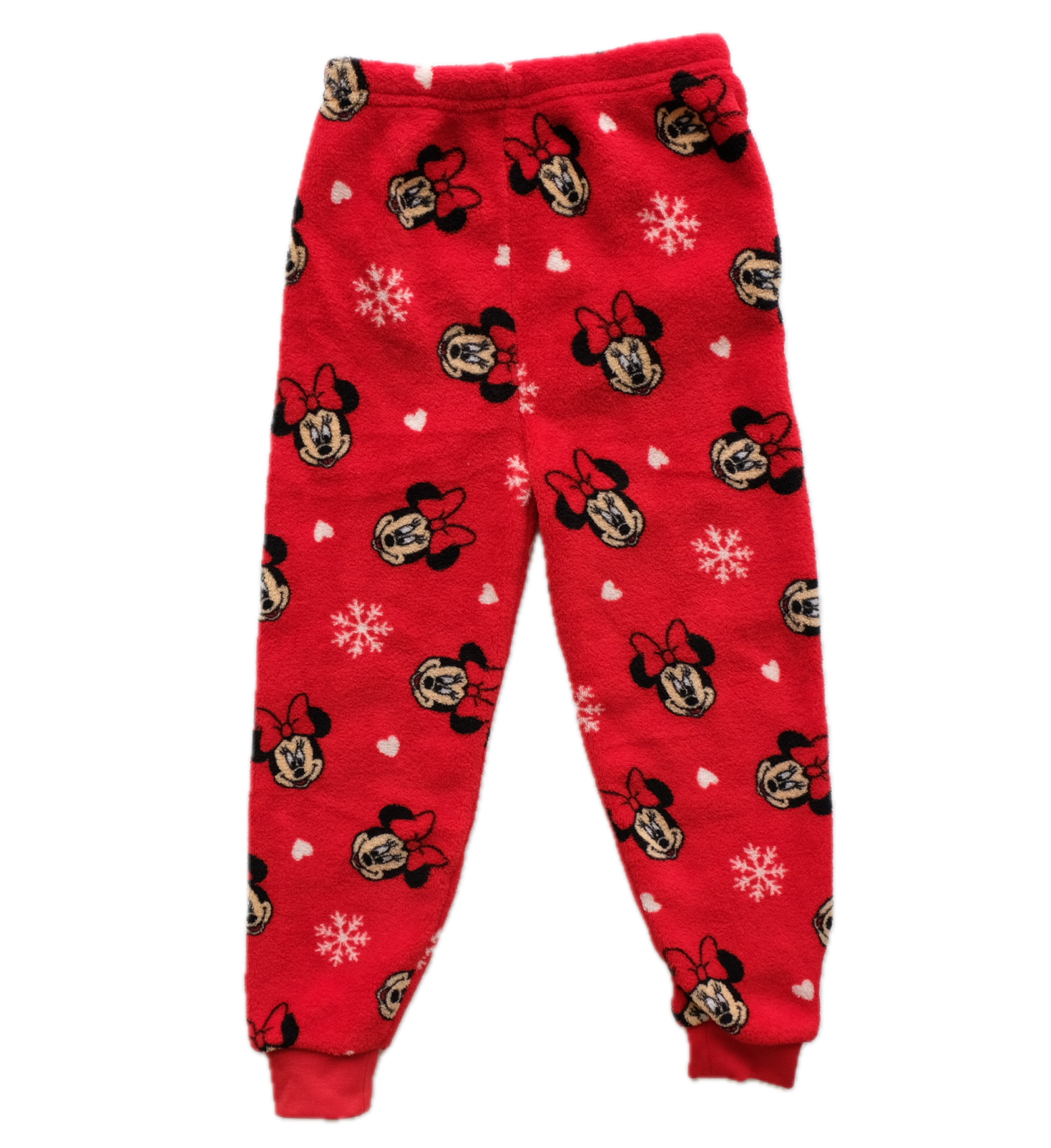 Pantalon en pilou bien chaud, coloris rouge, imprimé Minnie all over. Sweat blanc assorti offert avec.