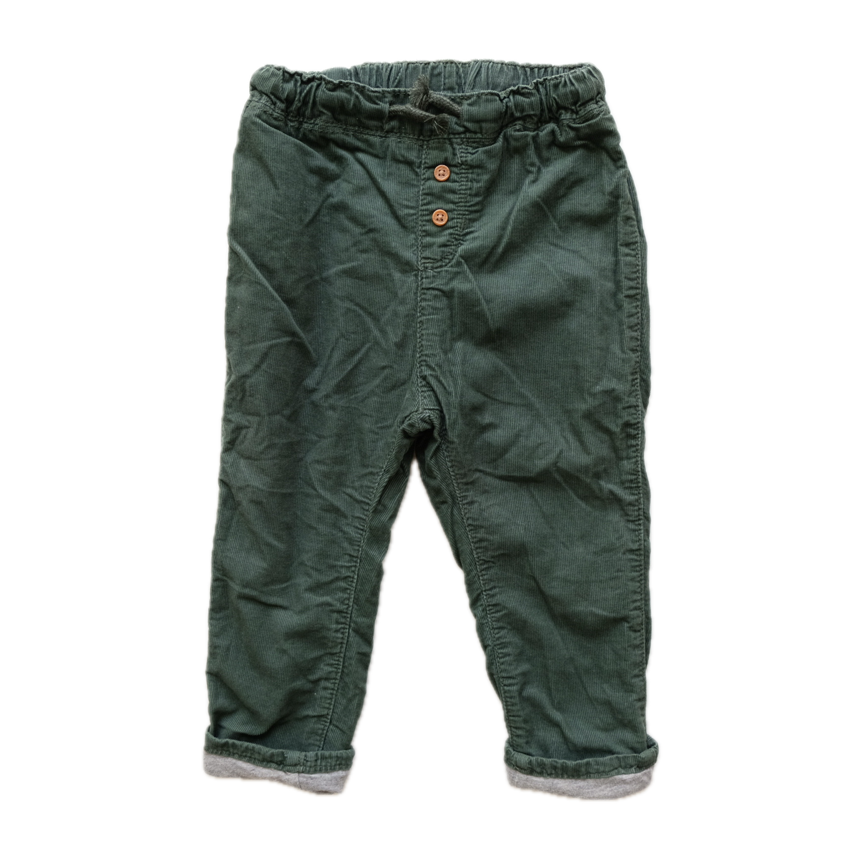 Pantalon en velours côtelé coloris vert foncé, doublure intérieure en coton coloris gris uni. Taille ajustable + cordon de serrage. Très confortable !