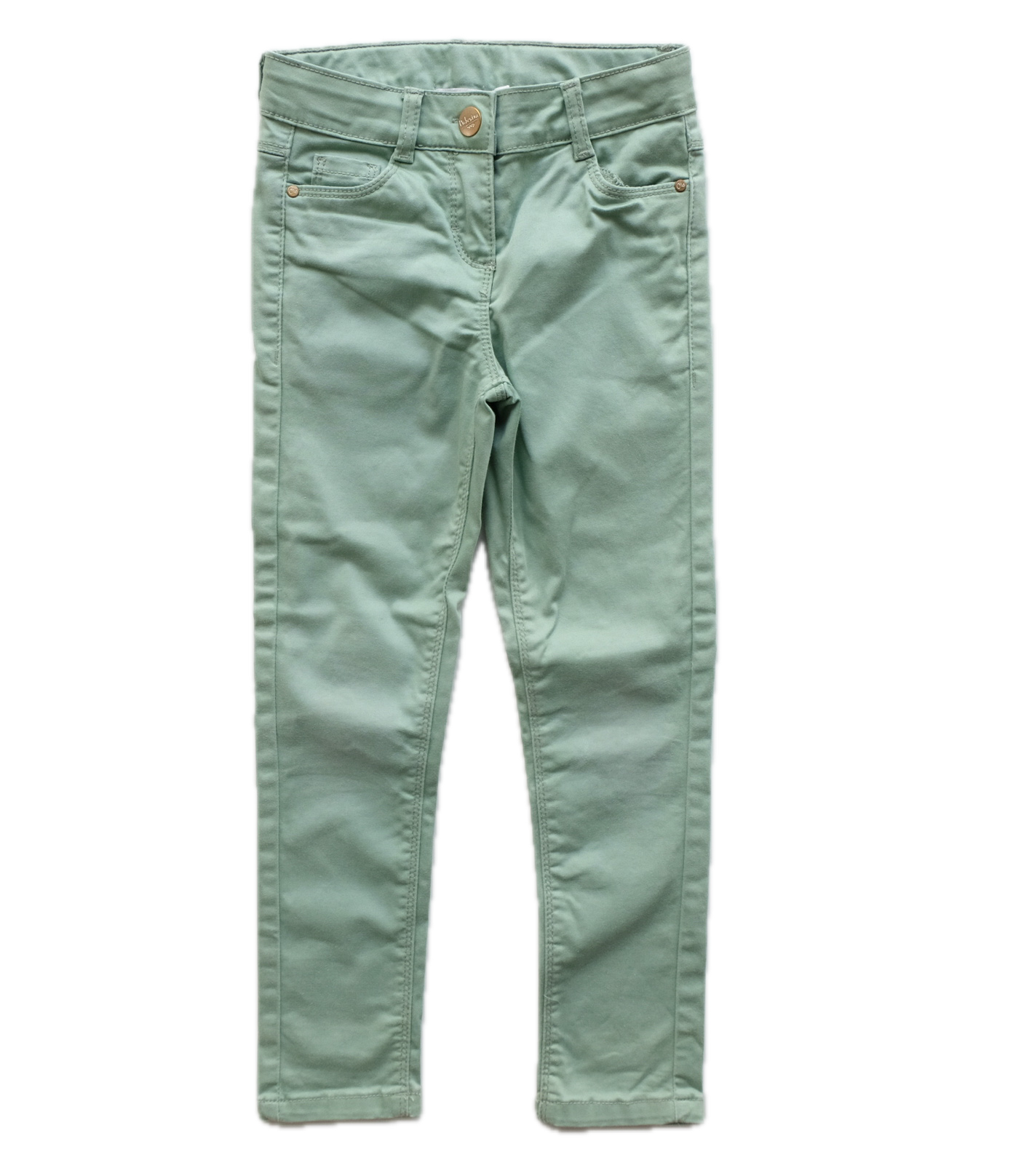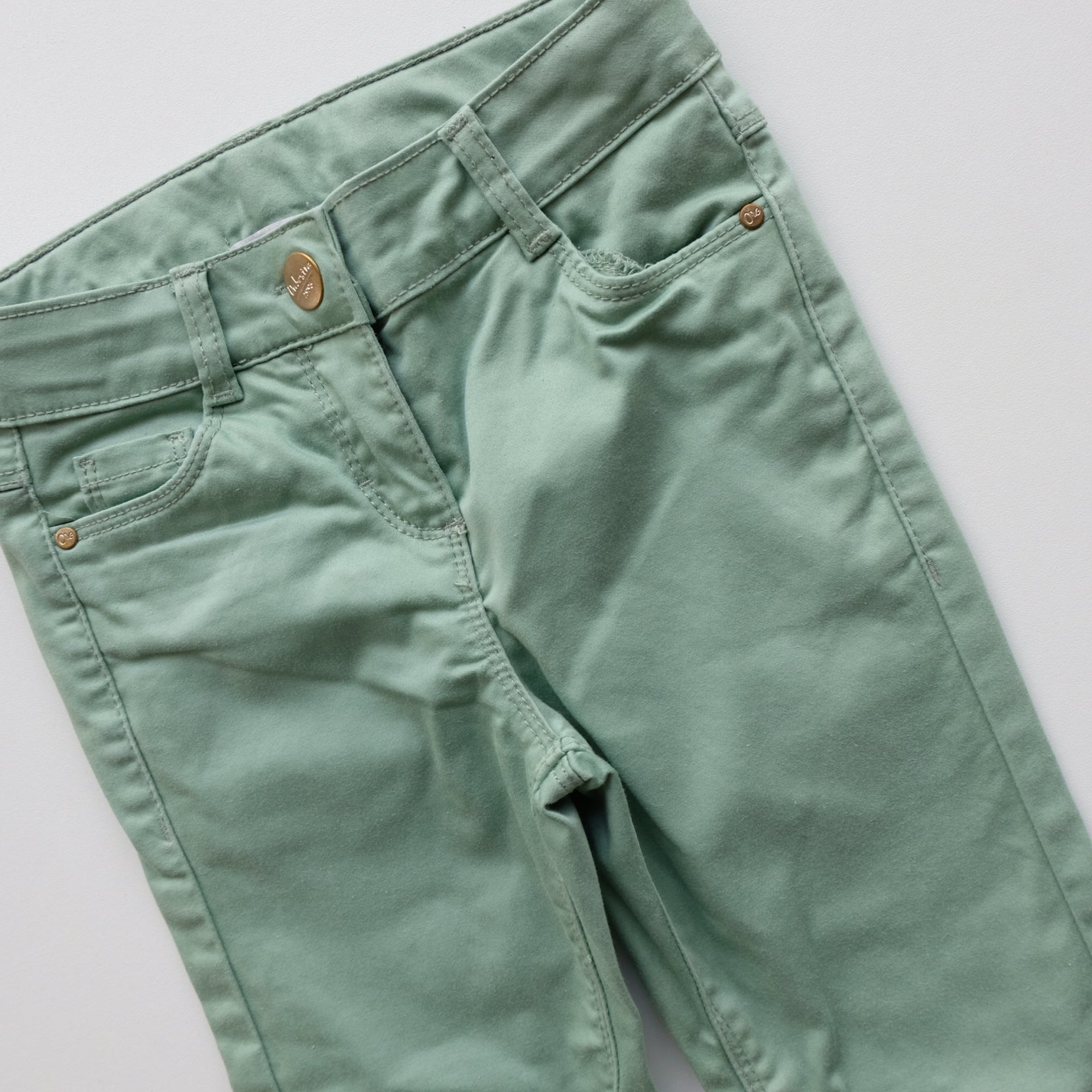 Pantalon en coton, coloris vert d'eau uni, coupe slim. Taille ajustable.