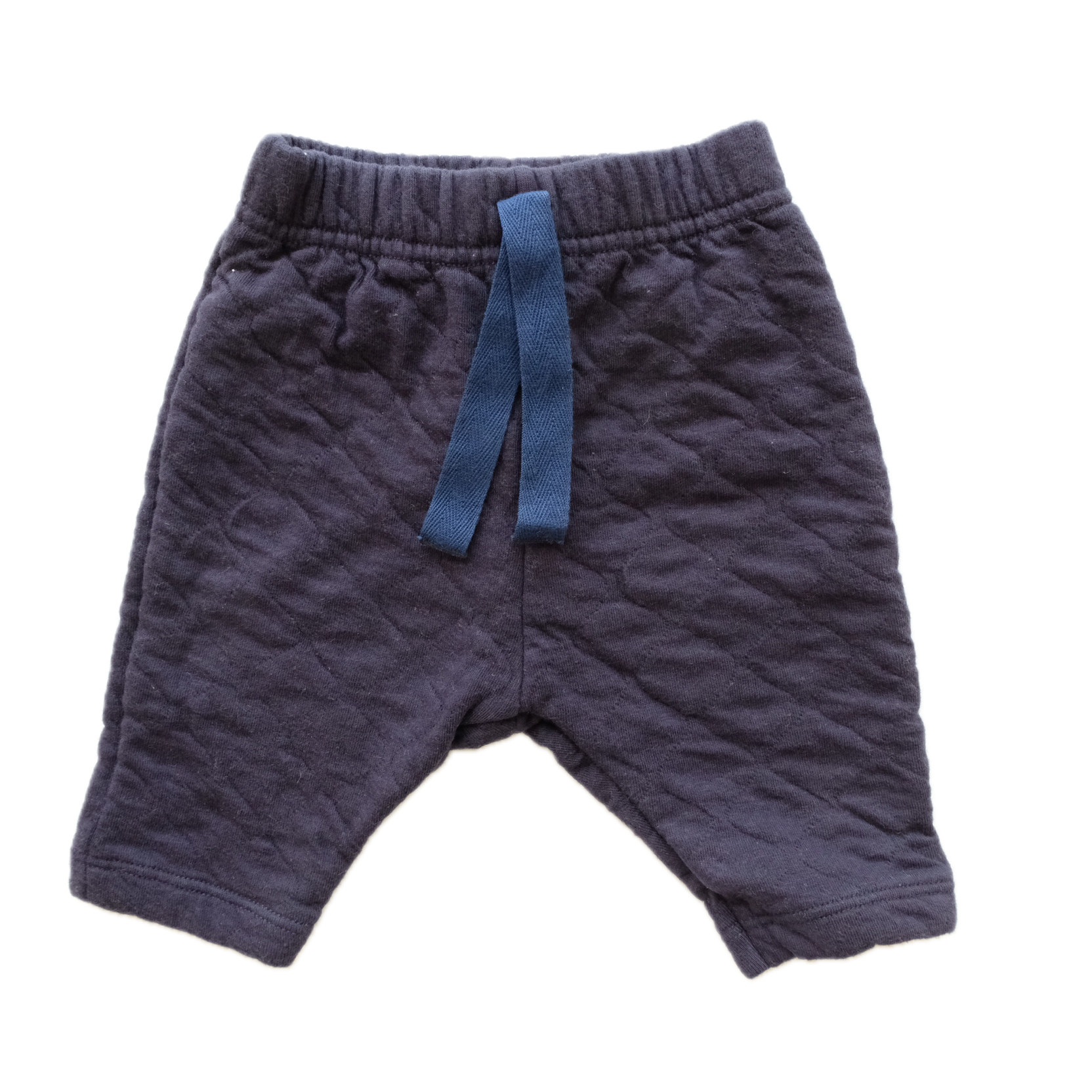 Pantalon confortable en coton matelassé, coloris bleu marine uni. Taille élastiquée + petit cordon à nouer. Mixte.