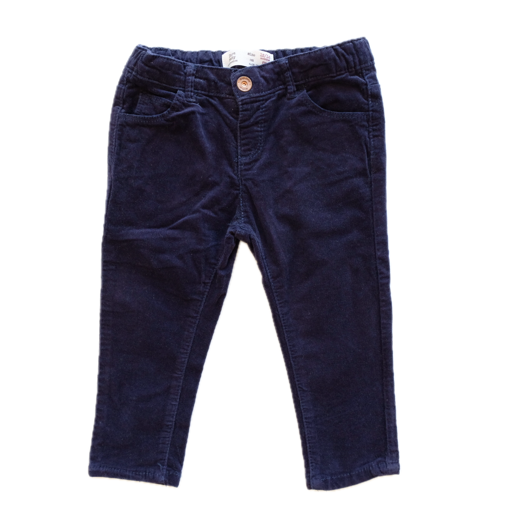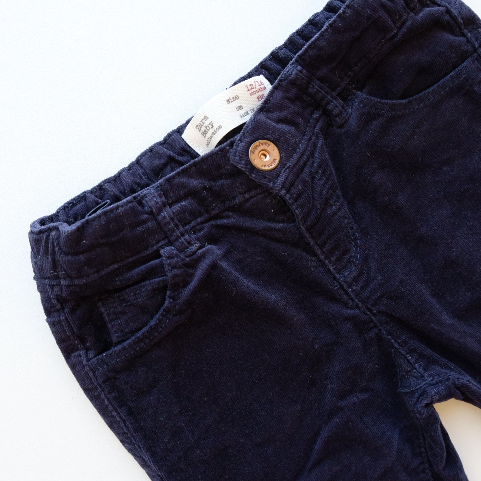 Pantalon en velours côtelé, coloris bleu marine uni. Taille ajustable.