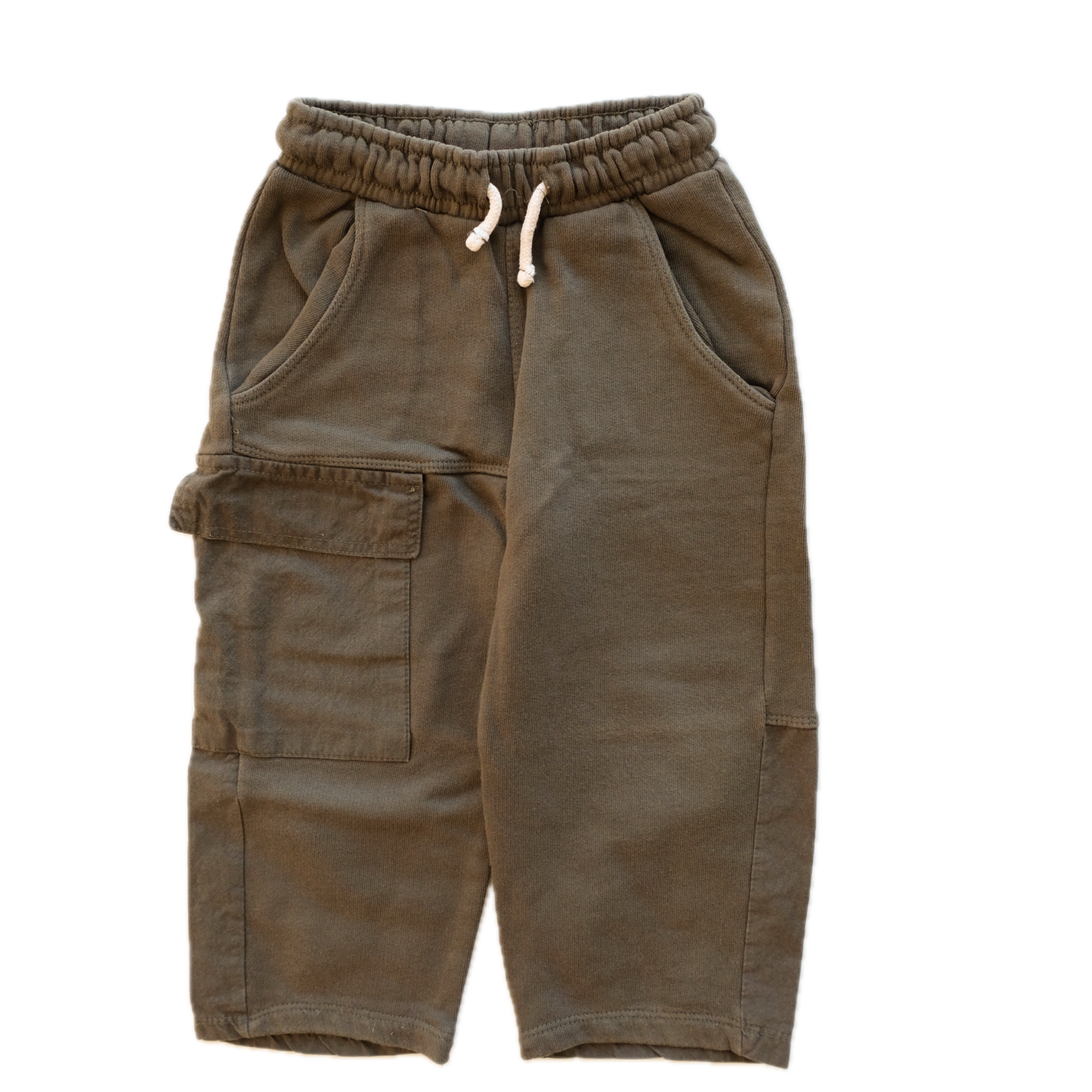 Pantalon coupe large confortable, coloris vert foncé. En coton. Taille élastiquée avec cordon de serrage blanc. Très chouette et confortable !
