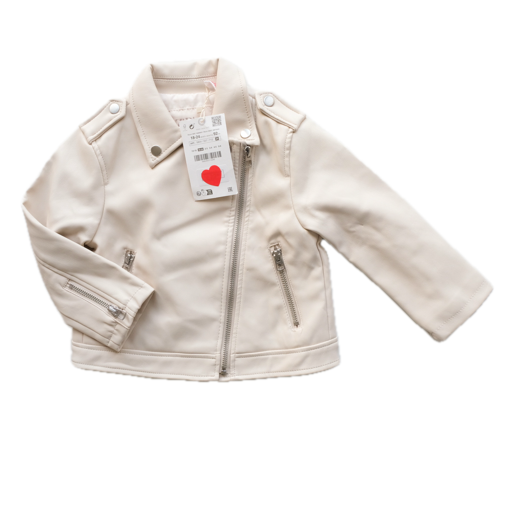 Veste, perfecto en simili cuir, coloris crème uni. Toute petite marque de l'antivol au niveau de la couture. Se voit peu.