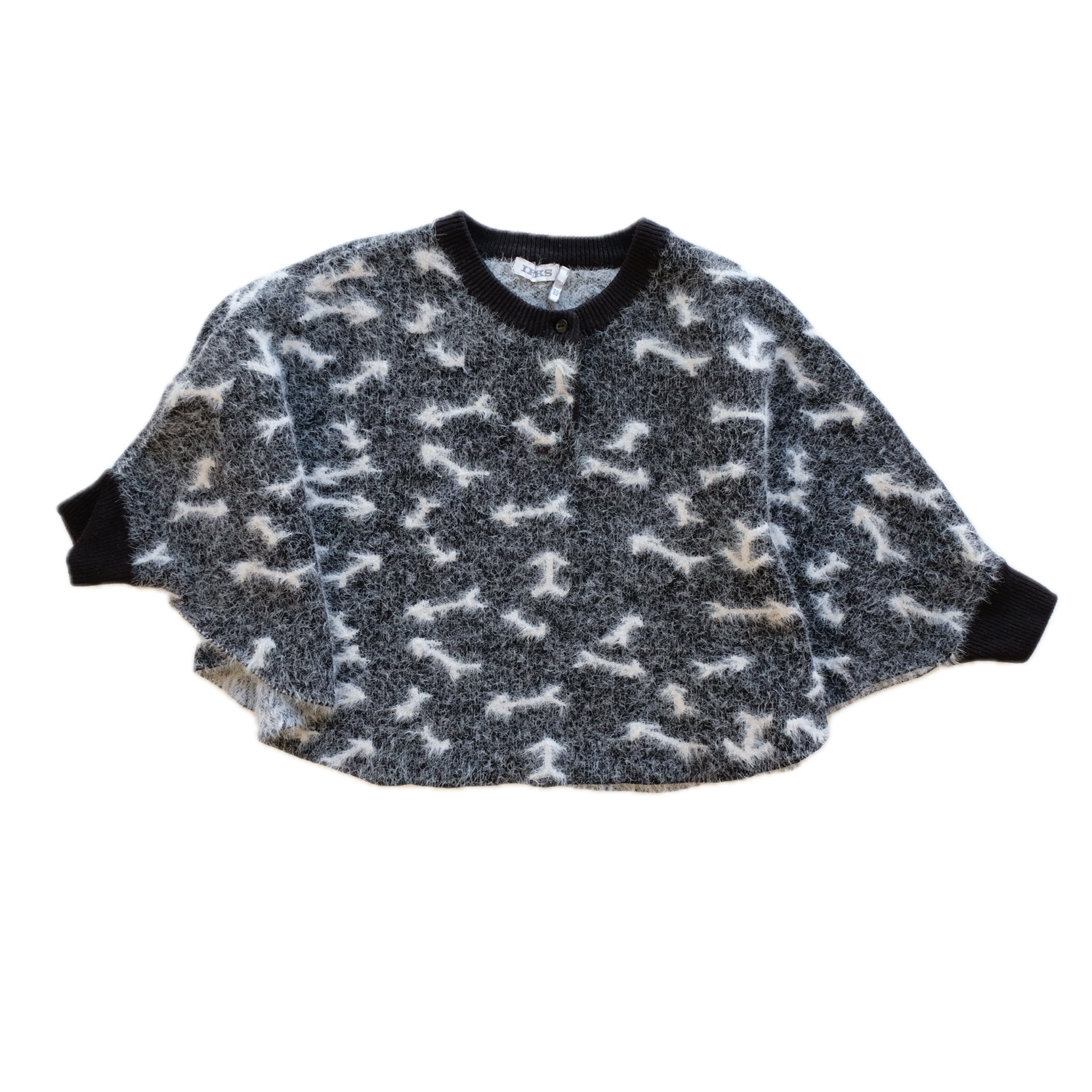 Pull, cape à manches longues, coloris noir et blanc. Composition : polyamide et viscose. Très chouette et original.