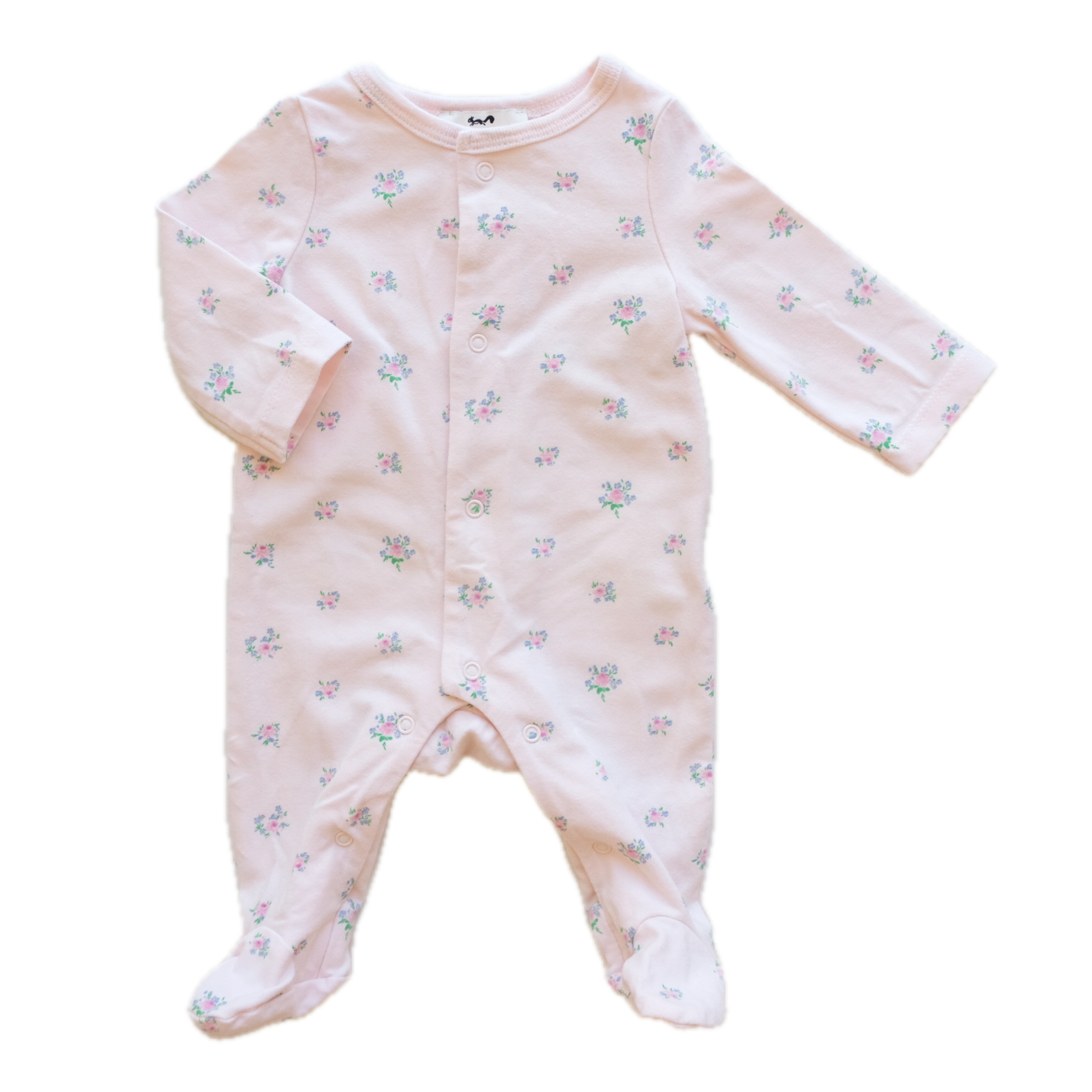 Pyjama, dors-bien en coton, coloris rose, imprimé fleuri all over. Boutons pressions au devant.