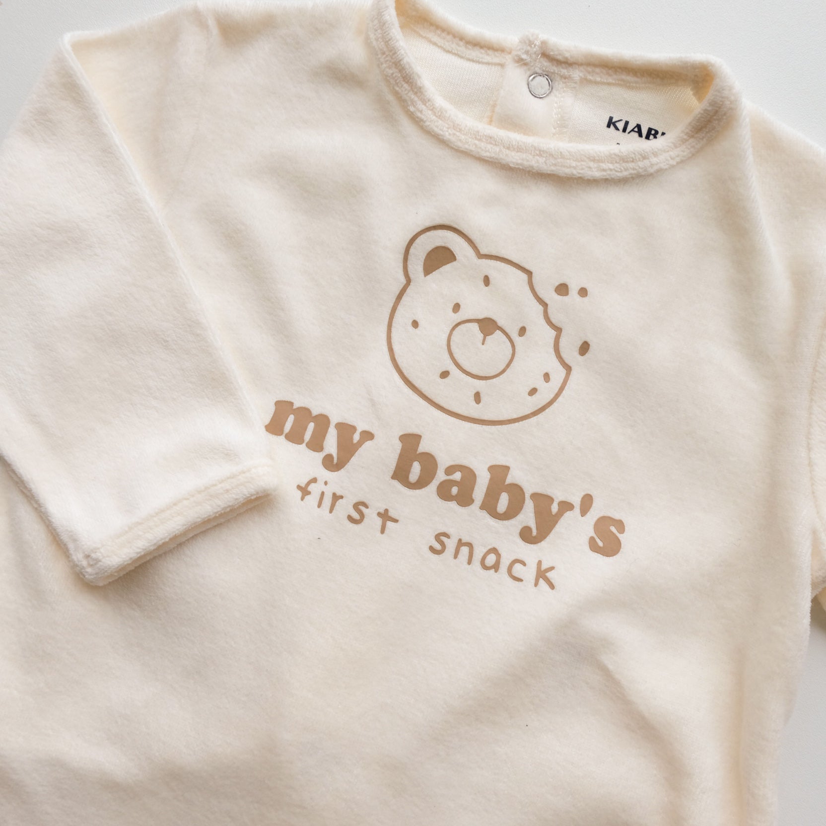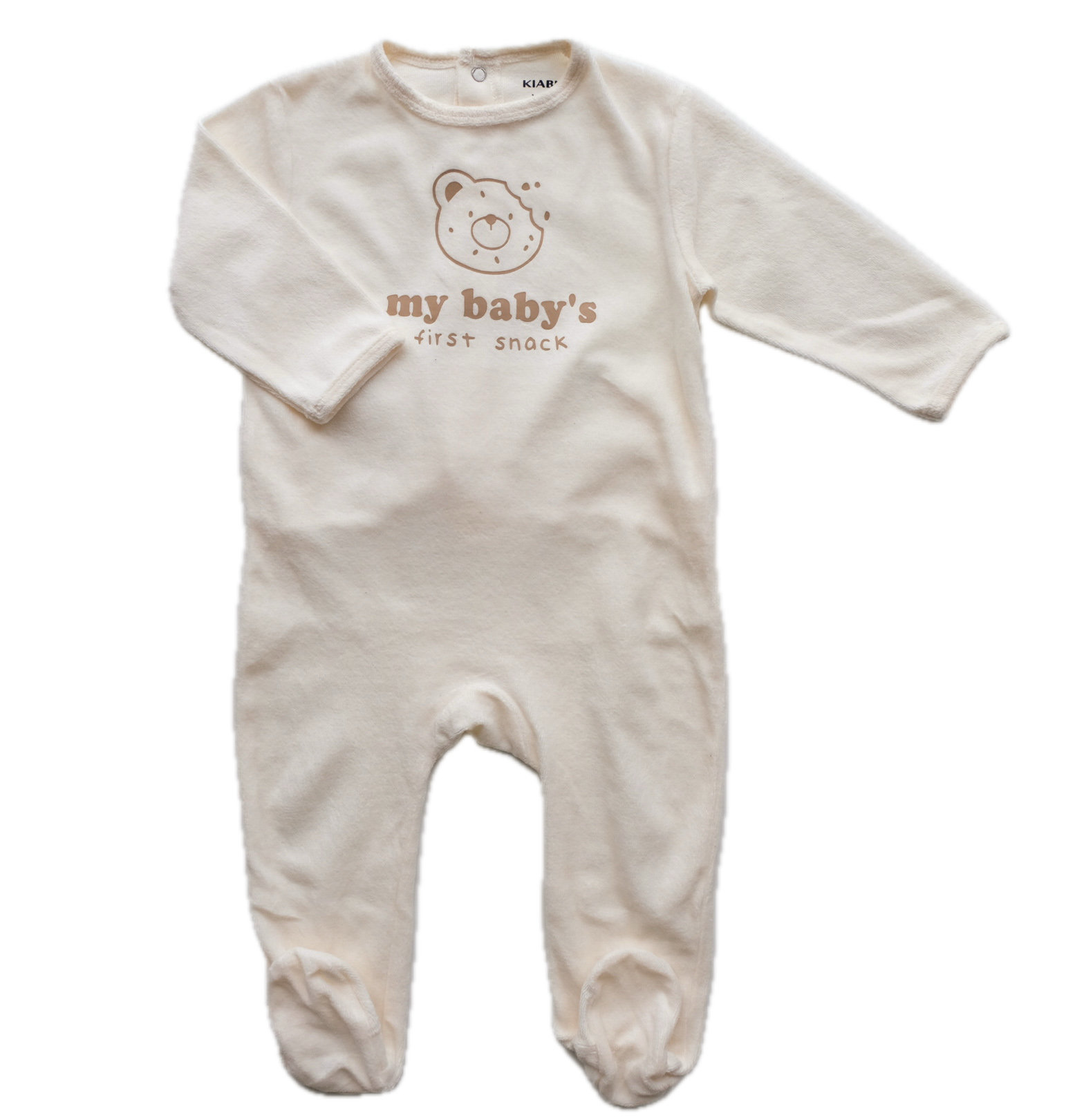 Pyjama, dors-bien en velours, coloris crème et beige, fermeture par pont et boutons pressions au dos. Mixte.