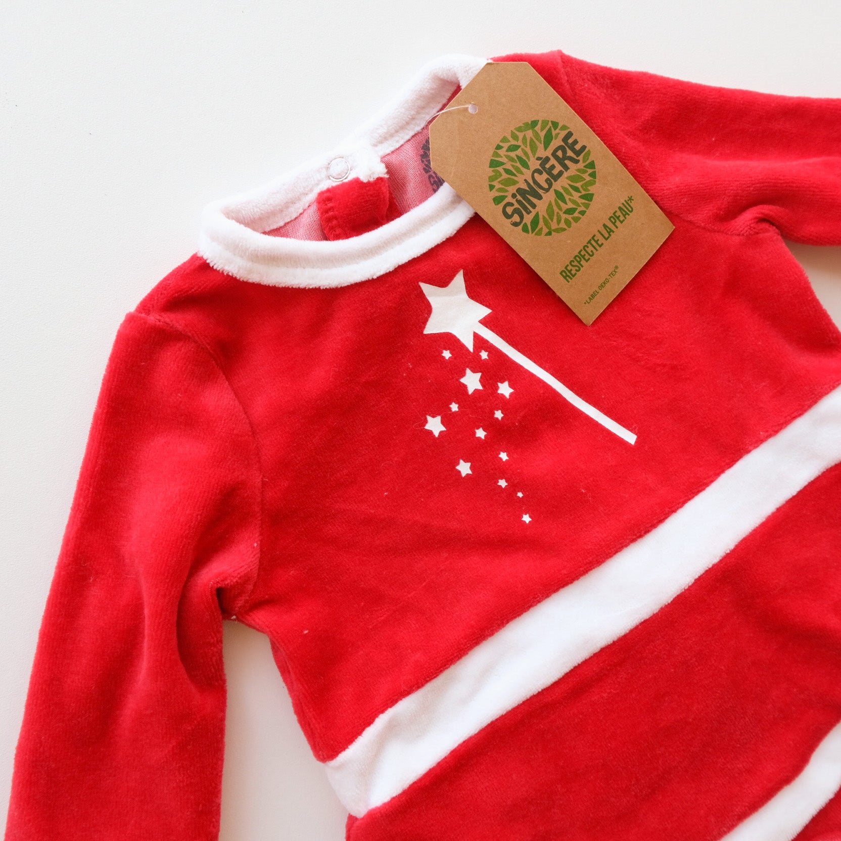 Pyjama de noël rouge et blanc en velours tout doux. Étoiles blanches sur le devant.