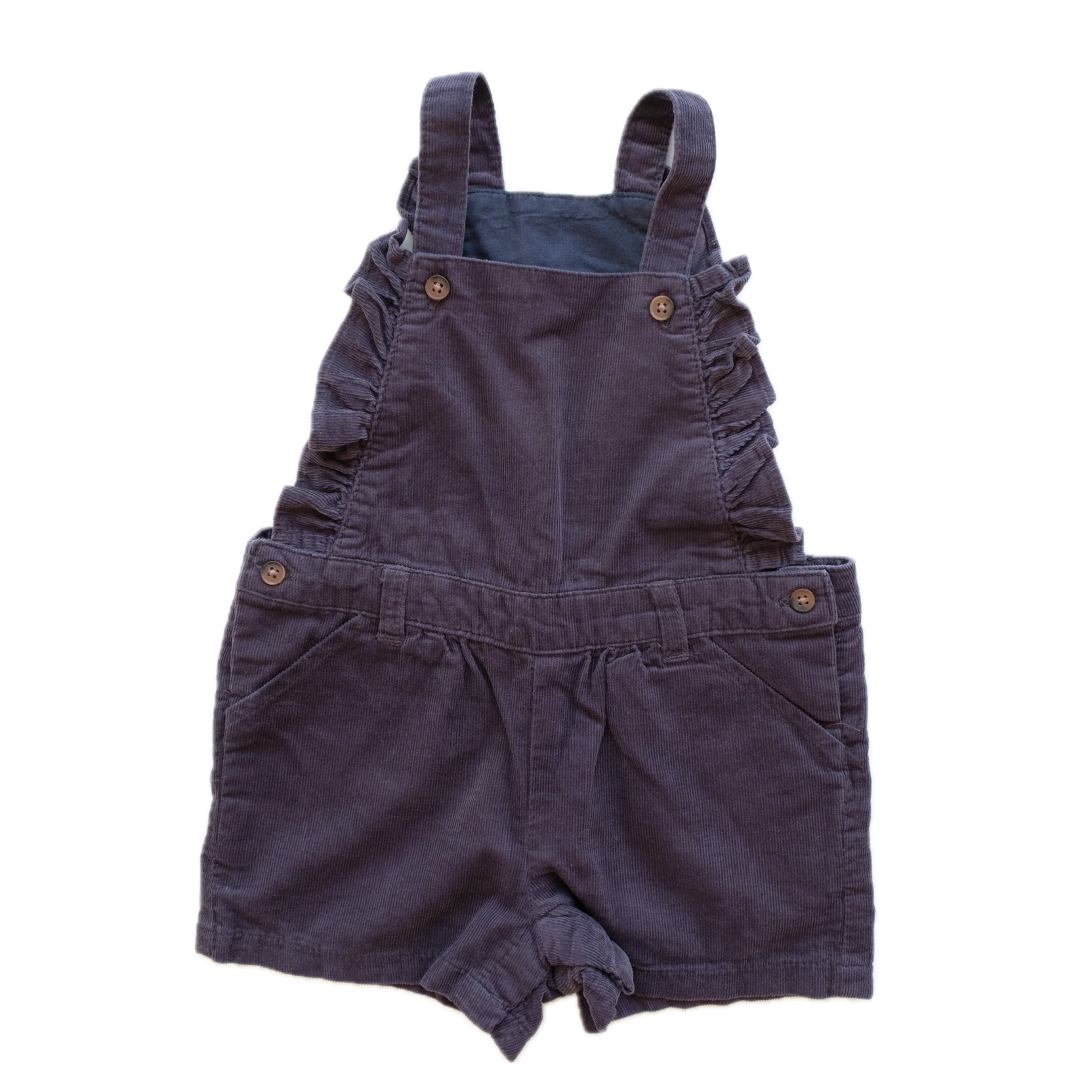Salopette courtes en velours côtelé, coloris bleu marine uni. Petits volants au devant. Super mignonne !