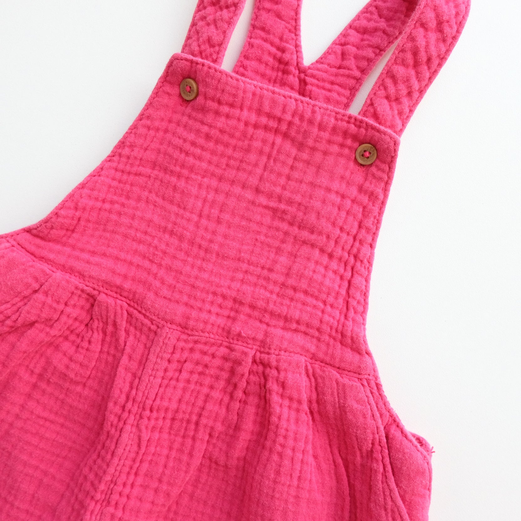 Salopette courte en gaze de coton, coloris rose fuschia uni. Super jolie !