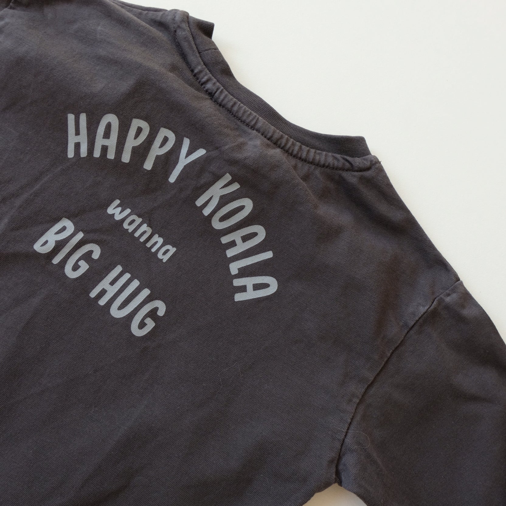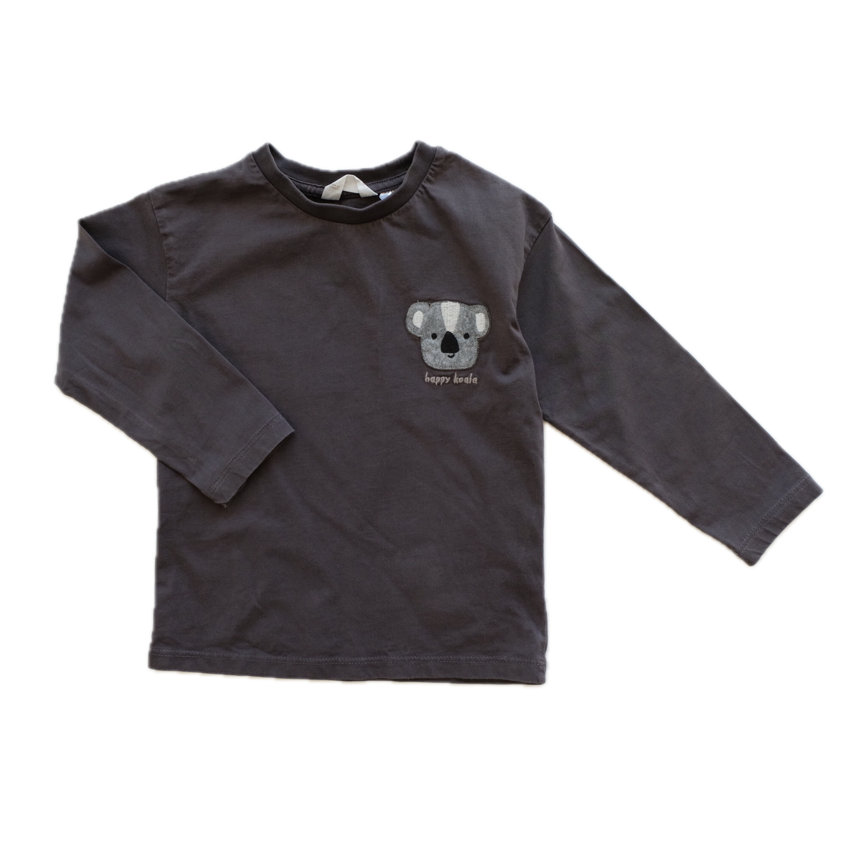 T-shirt à manches longues en coton, coloris gris foncé, empiècement koala cousu au devant.