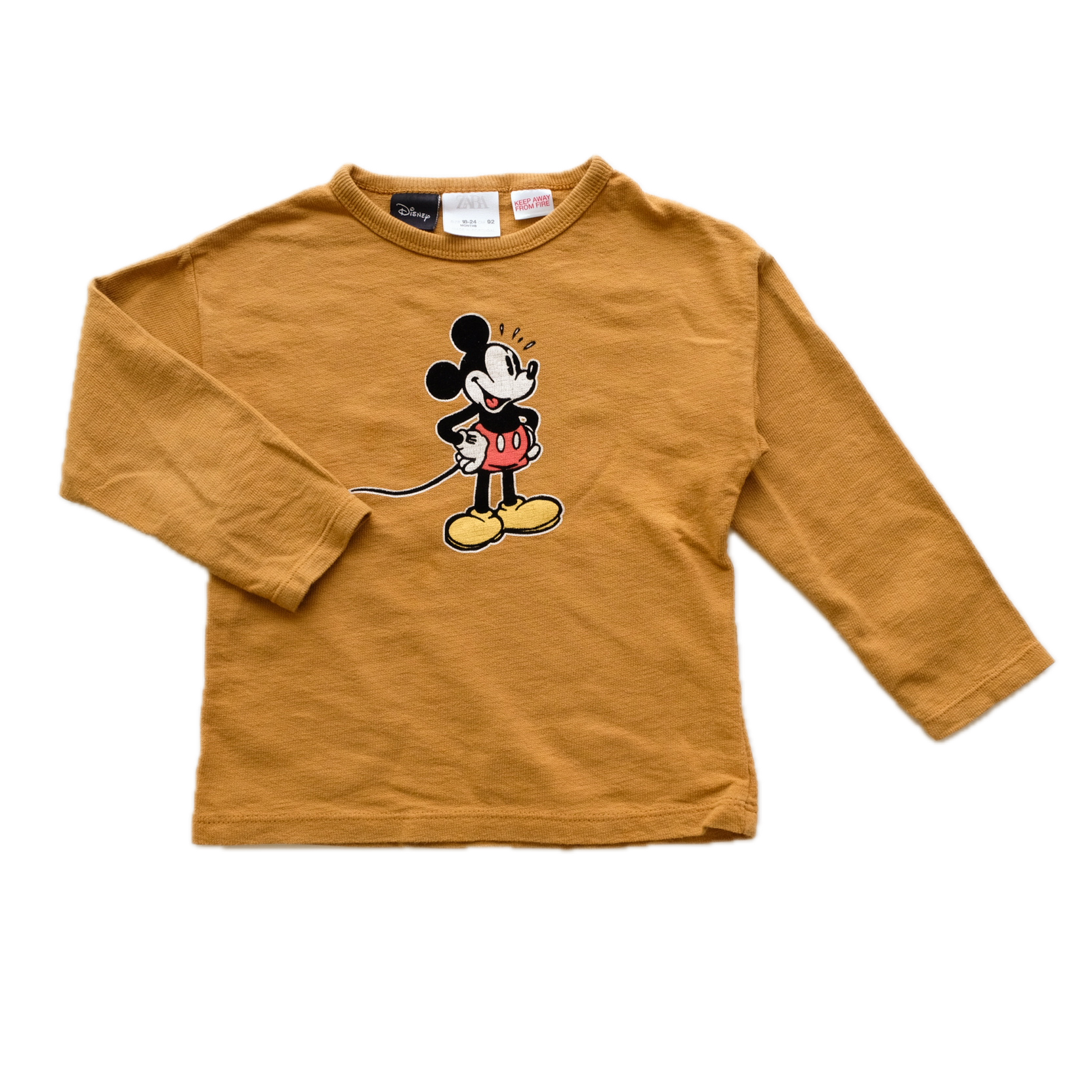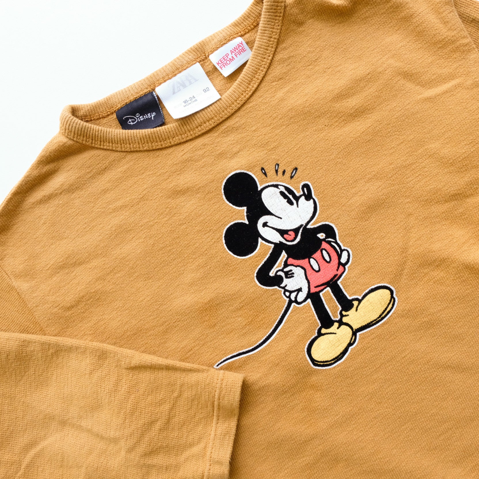 T-shirt à manches longues en coton épais, coloris marron clair. Collection Disney, imprimé Mickey au devant.