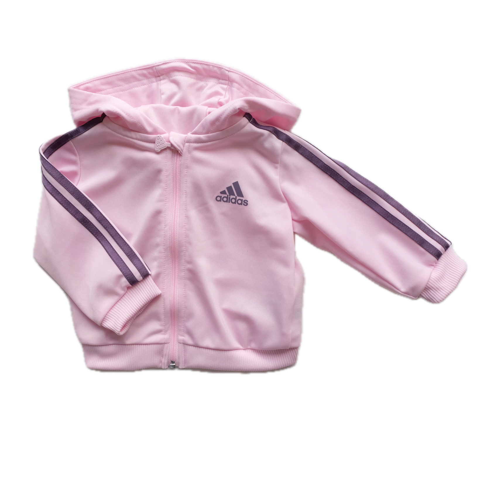 Gilet, veste zippée, manches longues coloris rose et lilas. Capuche intégrée.