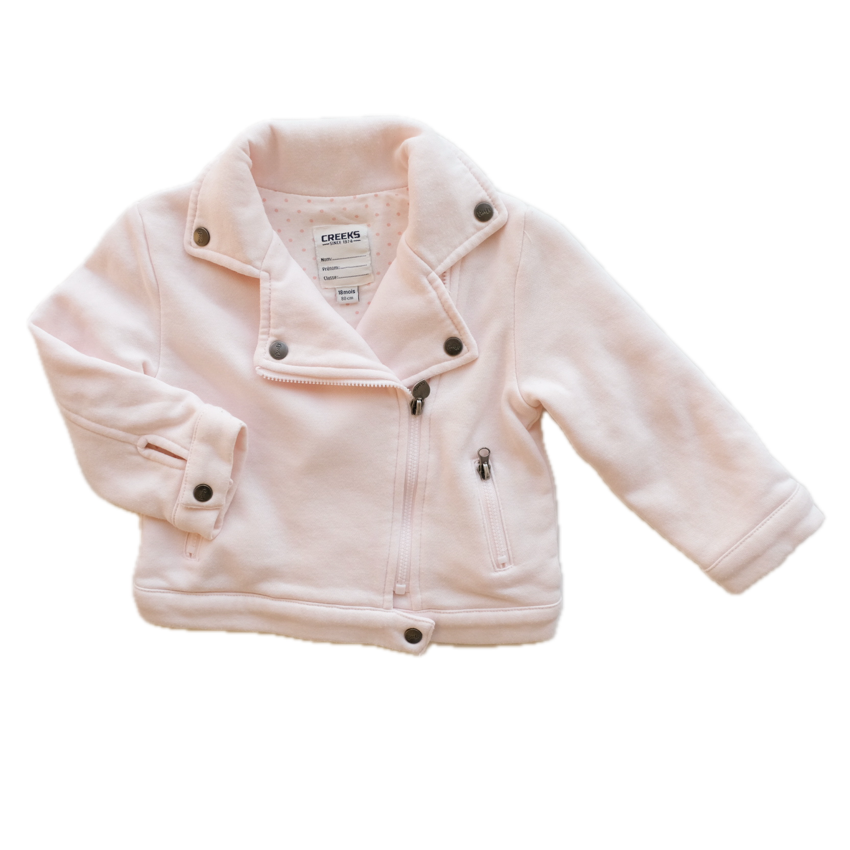 Veste, gilet manches longues, coupe perfecto en coton rose pâle. Zip au devant. Très chouette !