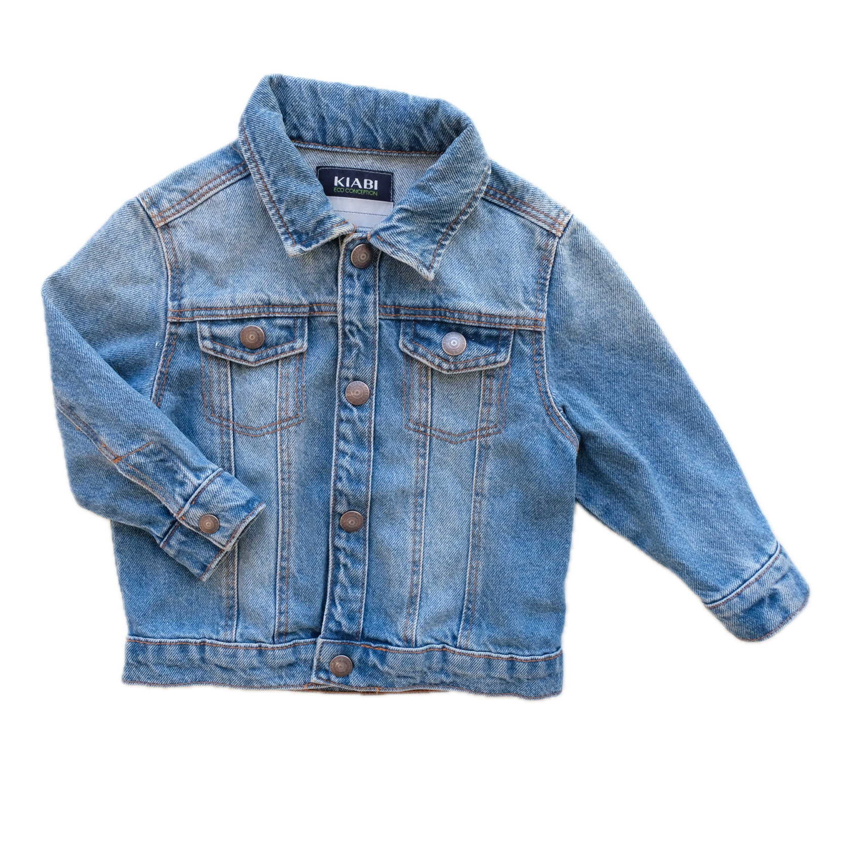 Veste en jean à manches longues, coloris bleu uni. Mixte.