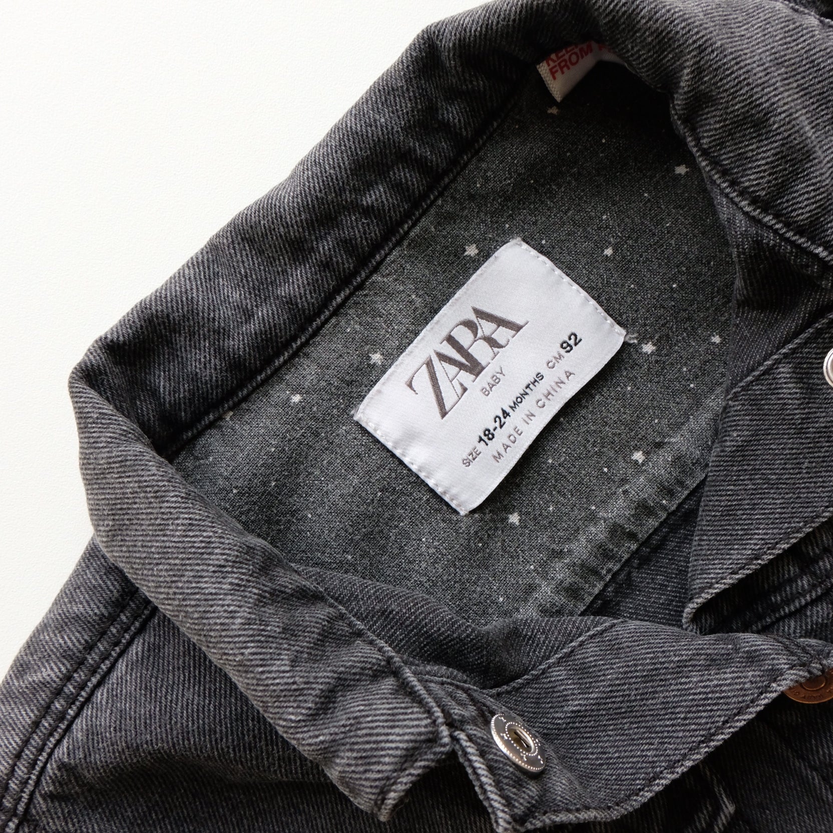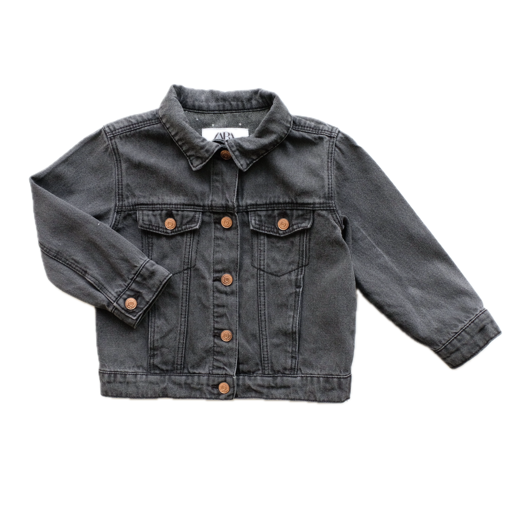 Veste en jean, coloris noir / gris foncé, manches longues. Boutons pressions au devant.